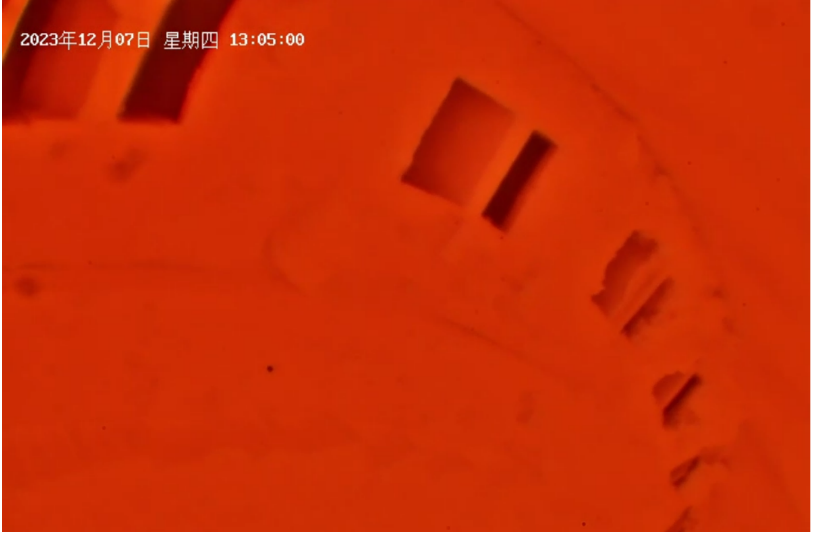 圖為豫興公司采用熱成像儀對河北省某鋼鐵公司(懸鏈線拱頂直徑12米)懸鏈線頂燃式熱風爐爐內燃燒器噴嘴結構進行探查,發現其完好無損。