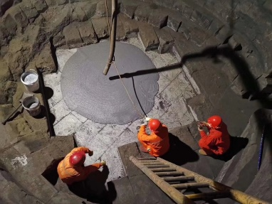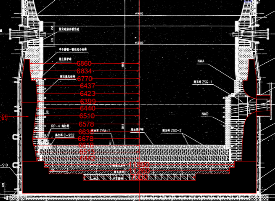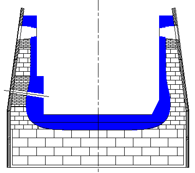 對一個中修的高爐來說,一般情況下高爐運行不超過10年,陶瓷杯雖侵蝕殆盡,但碳磚仍保存一部分。而這部分碳磚,實際已經自我形成穩定的傳熱模型,因此也會呈現側壁殘存較厚、象腳區殘存薄、爐底呈“鍋底狀”等特點。因此,爐缸澆注技術,在前期設計方案過程,將這種情況充分考慮,停爐清理過程,將這些“有效”的碳磚,盡可能完整保留,然後再整體澆注陶瓷杯,即“利舊碳磚”。圖5是爐缸澆注前環碳保護性清理效果。一般情況下,運行不超過5年的高爐,碳磚利舊率可達到70%以上;而運行10年左右的高爐,碳磚利舊率可達50%以上。