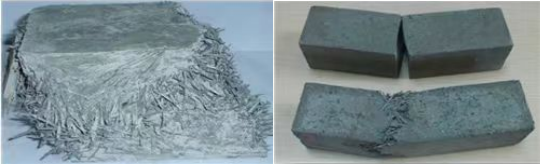 爐腹爐腰預掛渣皮技術是將金屬陶瓷材料澆注與冷卻壁表麵,在冷卻壁表麵形成一層永久性的人造渣皮baohuceng。gaicailiaojiangjinshuxianweiyinrudaofeijinshujiaozhuliaozhong,jiangliangzhedeyoudianxiangjiehe,tigaocailiaodekangzhekangyadengwulizhibiao,tigaocailiaodedaorenengli,yanchang爐腹、爐腰區域耐材的使用壽命。在350℃條件下,導熱係數20W/(K·m)左右;鋼纖維含量達到40%左右,不是普通的高鋼纖維澆注料(10%以下),其200℃以下抗折強度可達到35MPa~40MPa,在實驗室常規抗折檢測設備都無法將其壓彎,而折後的材料也不“折而不斷”。下圖為預掛渣皮材料的物理檢測圖。