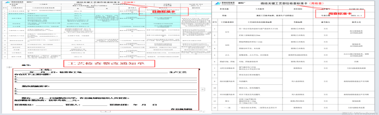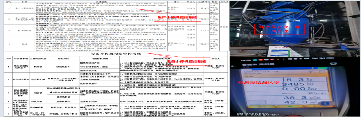 強化燒結操作穩定性:製定日參數控製及操作方針標準卡,主任進行把控,嚴格按操作方針執行操作,改善過程穩定性。