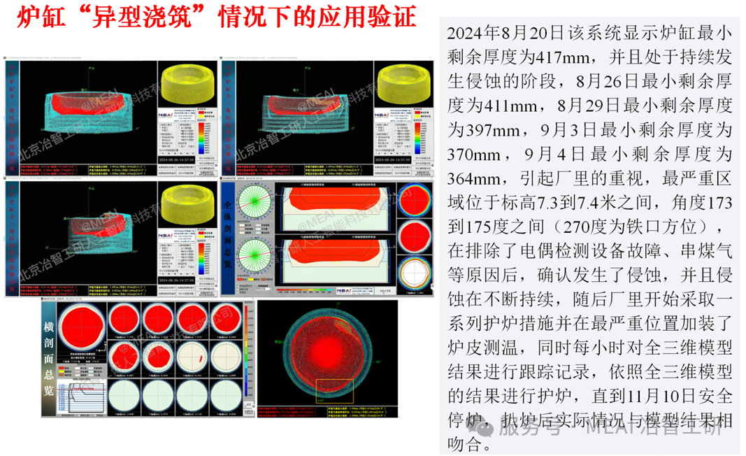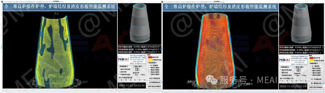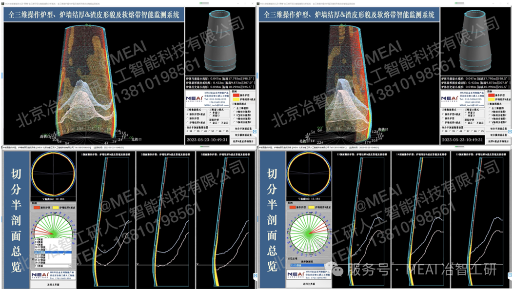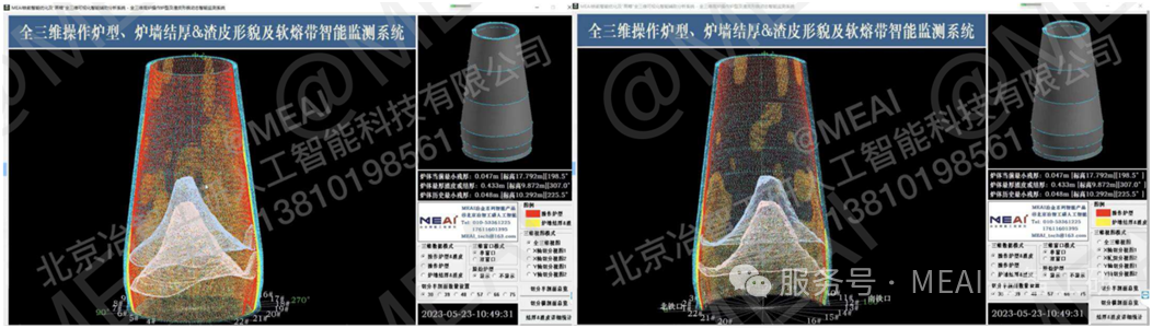 綜上,MEAI的全新一代高爐冶煉過程全三維可視化在線智能診斷分析係統,以技術領先性、精細化精度和智能化程度為冶金企業帶來了全新的技術價值和顯著的經濟效益,推動行業步入真正意義上的高爐“CT時代”。