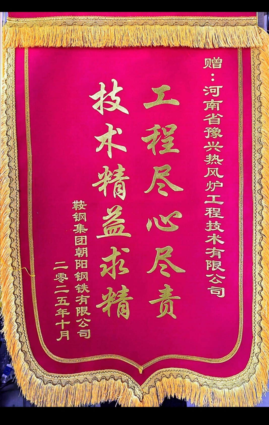 本次的優化改造的熱風爐技術特點和質量、工期,得到了鞍鋼集團朝陽鋼鐵廠的高度認可和讚譽,並給予豫興公司“工程盡職盡責、技術精益求精”的錦旗、並在表揚信函中給予“貴公司誠信守約、技術過硬、能打硬仗的優良作風”的極大鼓勵,這將激勵鞍鋼工程和豫興工程更加緊密合作,為今後行業技術改造工程奠定臻實基礎。