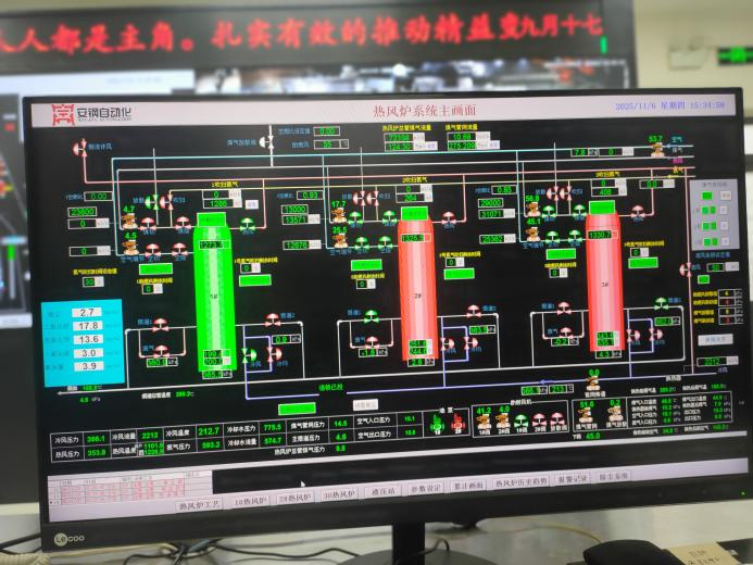 圖為河北金鼎重工1080m³高爐內燃式熱風爐爐殼利舊改造為懸鏈線頂燃式熱風爐係統監控畫麵