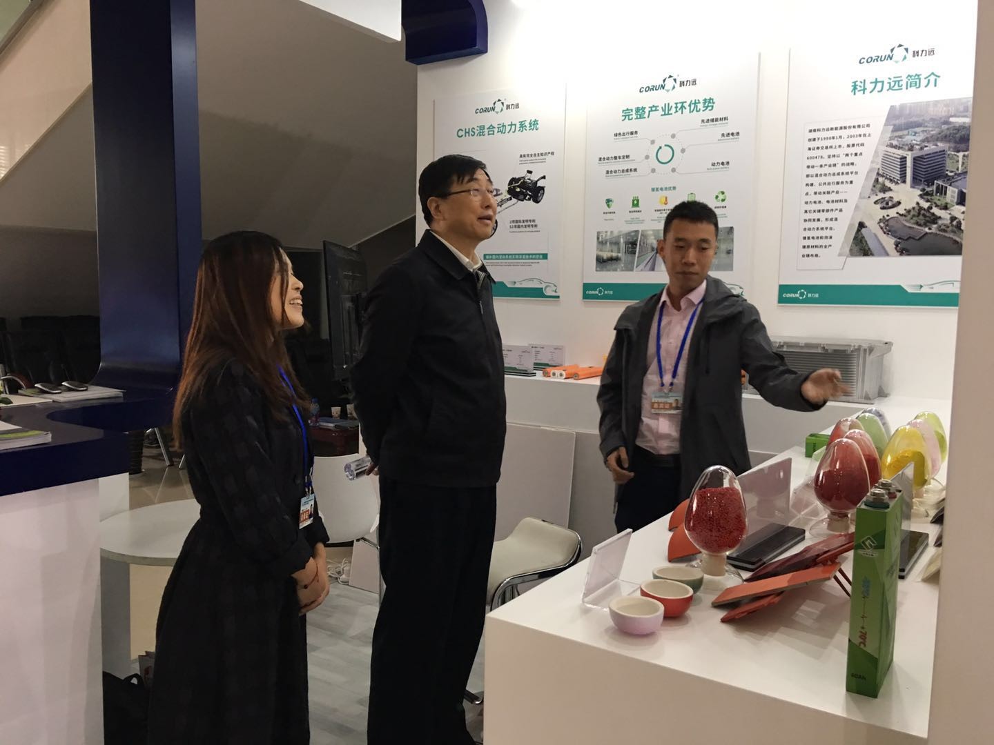 在展示的成果中 ,包bao頭tou稀xi土tu研yan究jiu院yuan的de磁ci製zhi冷leng技ji術shu在zai全quan球qiu範fan圍wei內nei處chu於yu研yan發fa的de第di一yi梯ti隊dui,磁ci製zhi冷leng代dai替ti氟fu製zhi冷leng將jiang是shi製zhi冷leng綠lv色se環huan保bao技ji術shu的de一yi大da飛fei躍yue。釤shan鈷gu磁ci體ti具ju有you較jiao強qiang的de抗kang腐fu蝕shi性xing、低溫度係數、工作溫度高等特點,包頭稀土研究院自主研發的釤鈷磁體成功用於長征係列火箭、神州係列飛船以及嫦娥探月工程等諸多國家重點項目;該所 “自主研發的稀土基SCR催化劑可替代傳統釩鎢鈦催化劑中的有毒組分釩,並顯著提高了熱穩定性及抗老化能力;自主研發的綠色環保稀土PVC助劑可替代傳統鉛鹽穩定劑,該產品已成功列入住建部新產品名錄和“一帶一路”合格供方產品。中科院長春應用化學研究所的交流LED發光材料及器件,將發光材料的餘暉特性與輸入電流波動性很好地結合起來,從而使交流LED照zhao明ming光guang源yuan在zai交jiao流liu周zhou期qi的de光guang輸shu出chu保bao持chi穩wen定ding。該gai項xiang成cheng果guo已yi獲huo得de三san項xiang中zhong國guo發fa明ming專zhuan利li授shou權quan並bing獲huo得de推tui廣guang應ying用yong。另ling外wai,該gai所suo通tong過guo優you化hua寬kuan溫wen儲chu氫qing合he金jin粉fen製zhi備bei工gong藝yi,開kai發fa可ke在zai寬kuan溫wen零ling下xia50℃至65℃應用特色的動力鎳氫高能電池生產技術,已成功用於純電動汽車、雪地摩托車等,解決了二次電池長期以來遇冷則弱問題。湖南科力遠新能源股份有限公司的寬溫稀土鎳氫電池,已廣泛用於公交、新能源汽車、列車等領域。其具有自主知識產權的CHS混合動力係統填補了國內混動係統實現深混技術的空白。