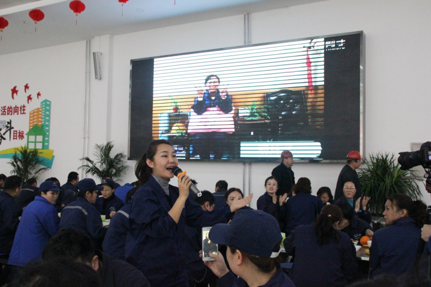 演唱者圍繞著每一排餐桌,把歌聲獻給每一位員工,所到之處贏得員工的掌聲、喝彩聲。餐飲中心大廳內歡聲笑語,喜氣洋洋,充滿了濃濃的節日氣氛。