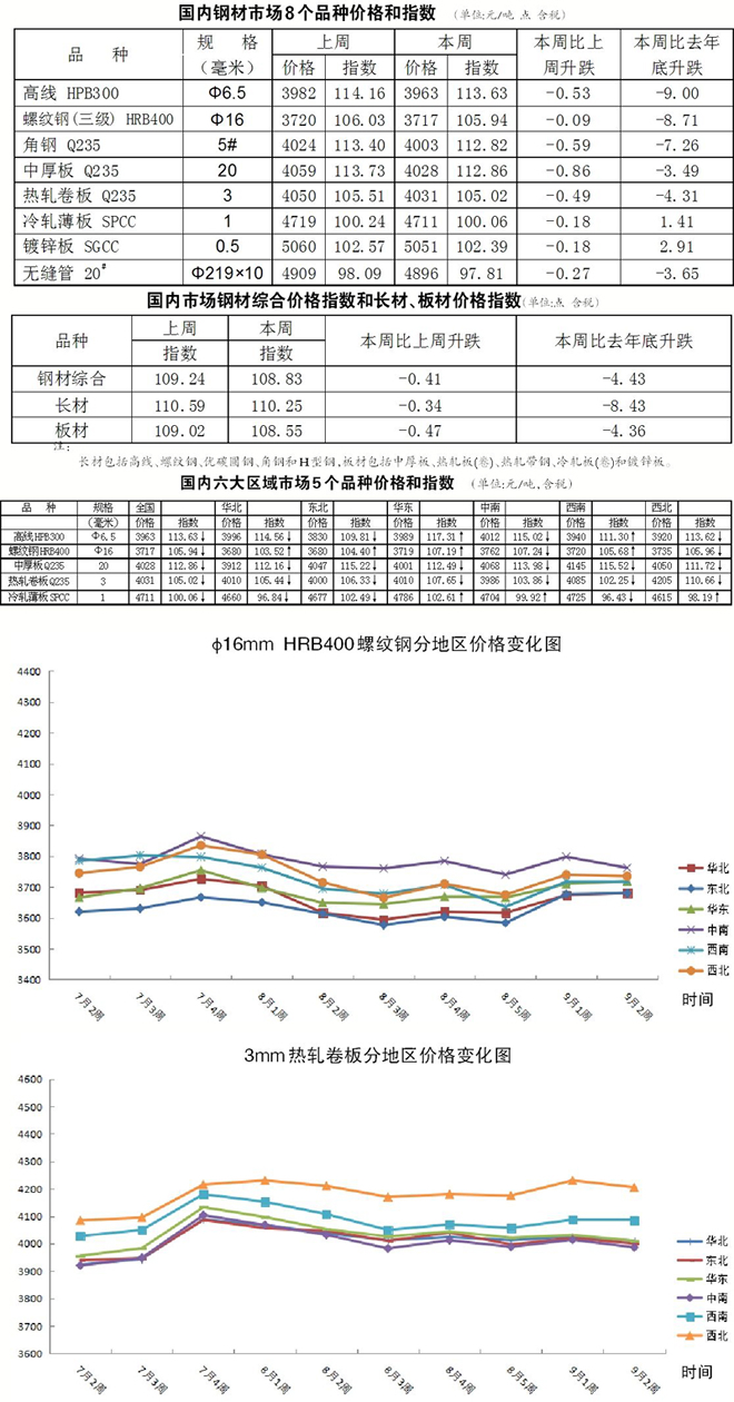 國內鋼材綜合價格指數環比下降0.41點 2023年9月11日—2023年9月15日