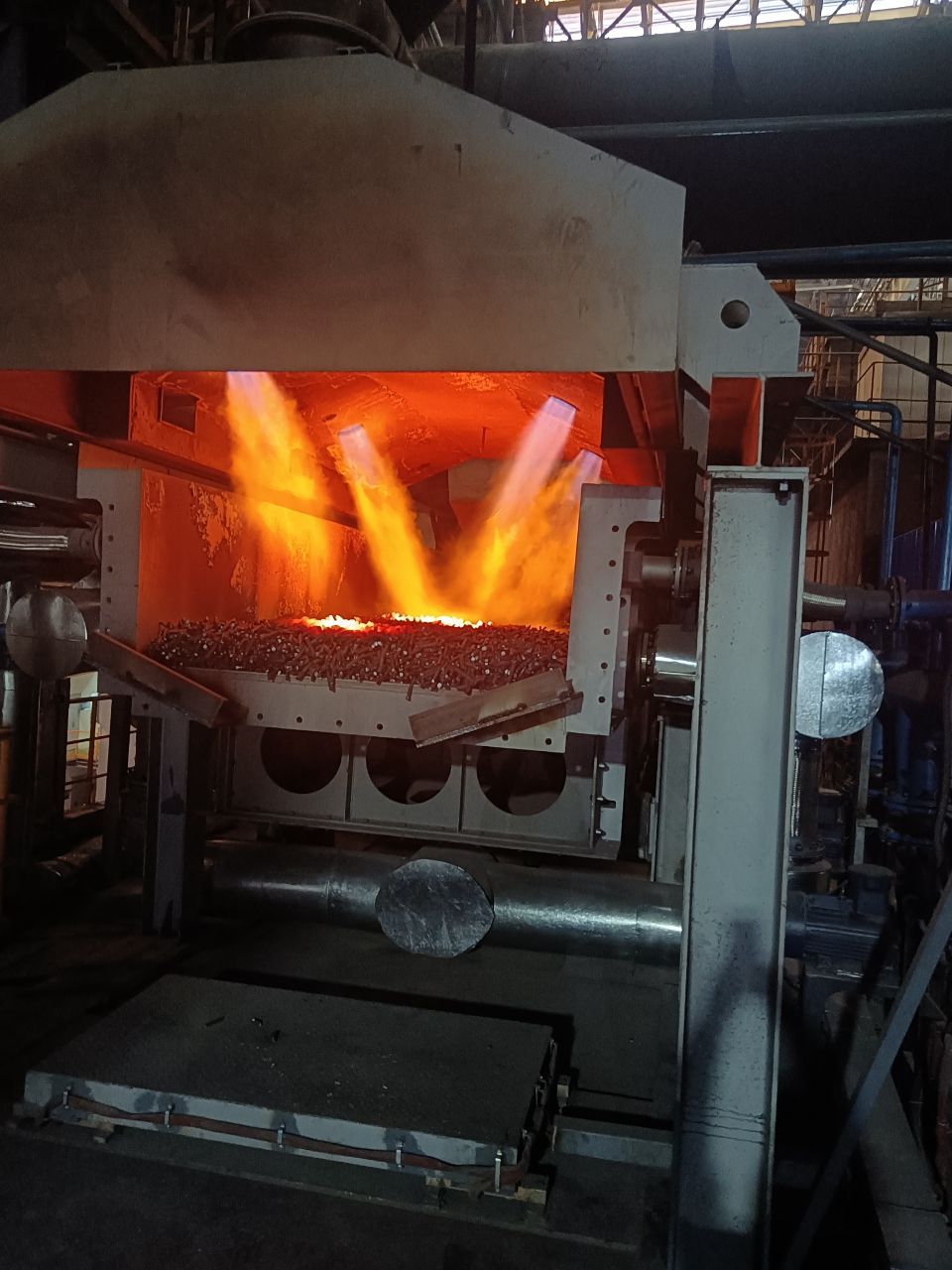 山西中陽鋼鐵轉爐爐後煉鋼車間的廢鋼預熱後的狀態