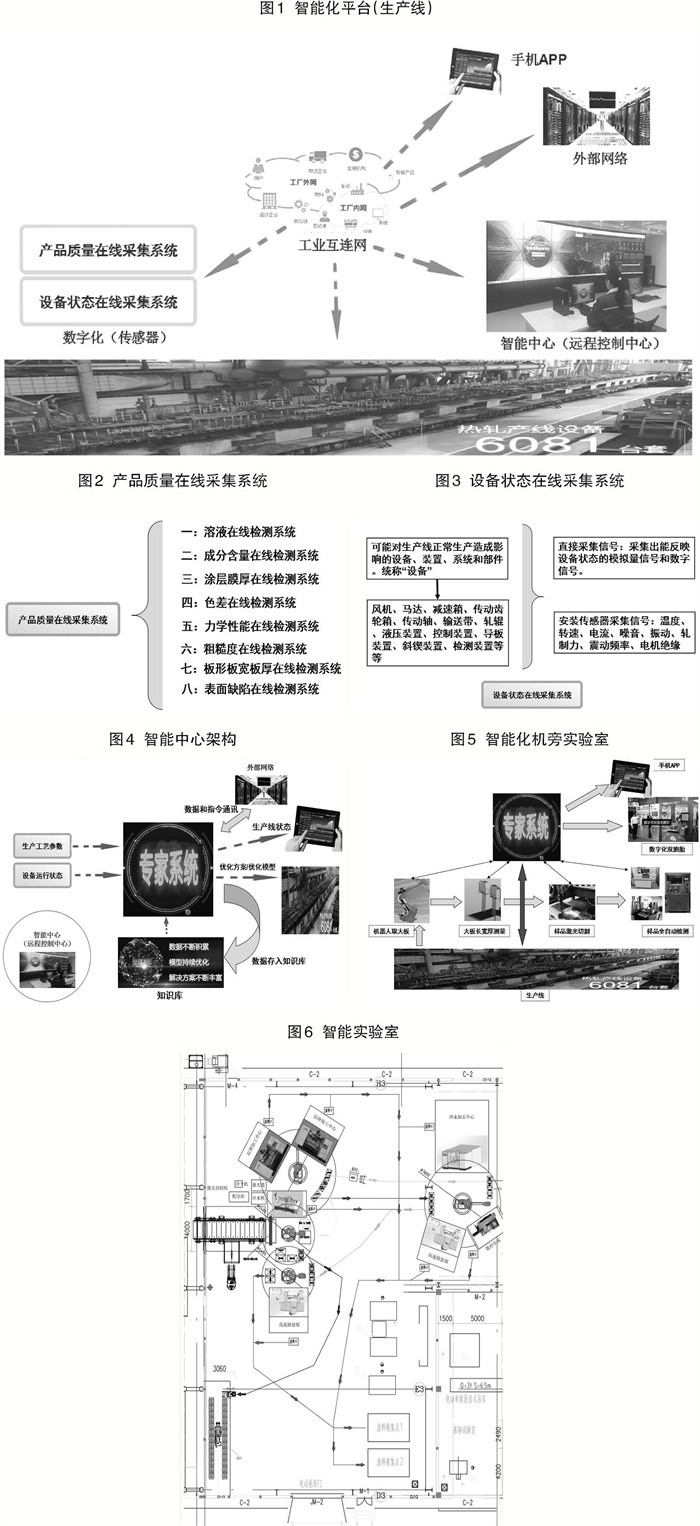生(sheng)產(chan)線(xian)是(shi)智(zhi)能(neng)化(hua)平(ping)台(tai),數(shu)字(zi)化(hua)是(shi)智(zhi)能(neng)化(hua)基(ji)礎(chu),工(gong)業(ye)互(hu)連(lian)網(wang)是(shi)智(zhi)能(neng)化(hua)支(zhi)撐(cheng),智(zhi)能(neng)中(zhong)心(xin)是(shi)智(zhi)能(neng)化(hua)核(he)心(xin)。鋼(gang)鐵(tie)廠(chang)生(sheng)產(chan)線(xian)目(mu)前(qian)總(zong)體(ti)自(zi)動(dong)化(hua)水(shui)平(ping)比(bi)較(jiao)高(gao),人(ren)工(gong)參(can)與(yu)調(tiao)節(jie)和(he)控(kong)製(zhi)不(bu)是(shi)很(hen)多(duo),這(zhe)就(jiu)意(yi)味(wei)著(zhe)產(chan)品(pin)質(zhi)量(liang)在(zai)線(xian)采(cai)集(ji)係(xi)統(tong)數(shu)字(zi)化(hua)和(he)設(she)備(bei)狀(zhuang)態(tai)在(zai)線(xian)采(cai)集(ji)係(xi)統(tong)數(shu)字(zi)化(hua)顯(xian)得(de)尤(you)為(wei)重(zhong)要(yao)。生(sheng)產(chan)線(xian)數(shu)字(zi)化(hua)了(le),智(zhi)能(neng)化(hua)就(jiu)不(bu)遠(yuan)了(le)(如圖1所示)。