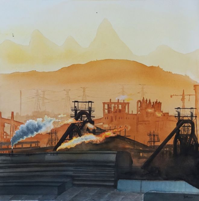 《鋼城之晨》水彩 黃真桂(柳鋼)