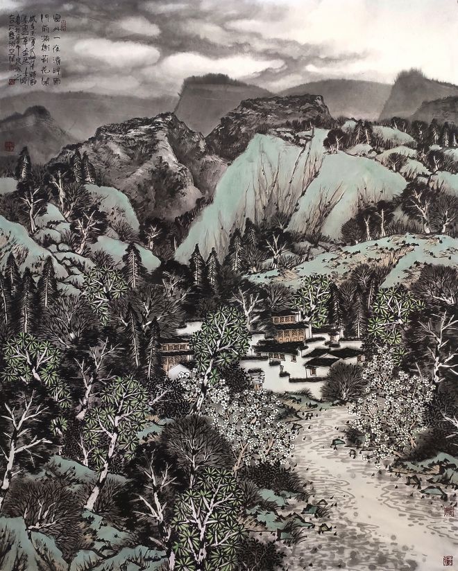 《窗外一夜清明雨 門前滿樹梨花開》國畫 馬誌剛(萊鋼)