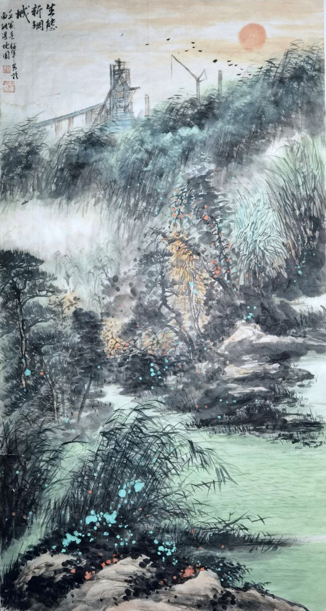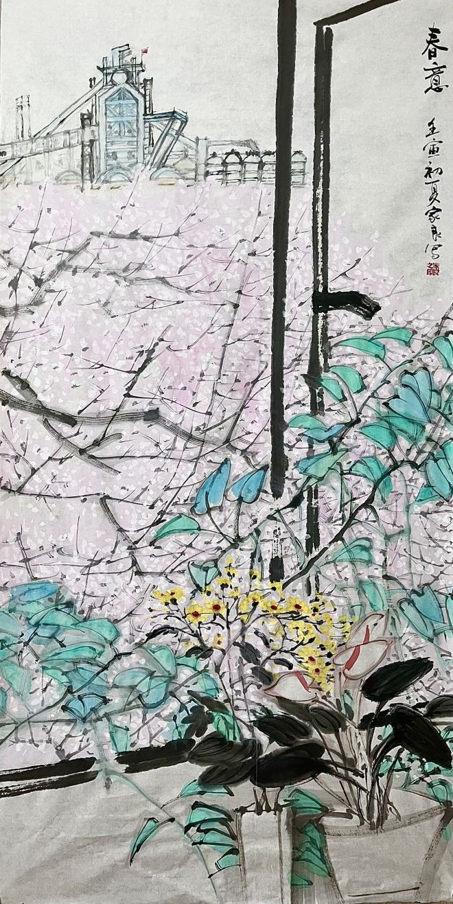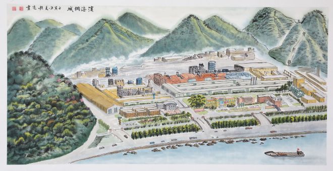 《十裏鋼城換新顏》國畫 顧源先(首鋼)