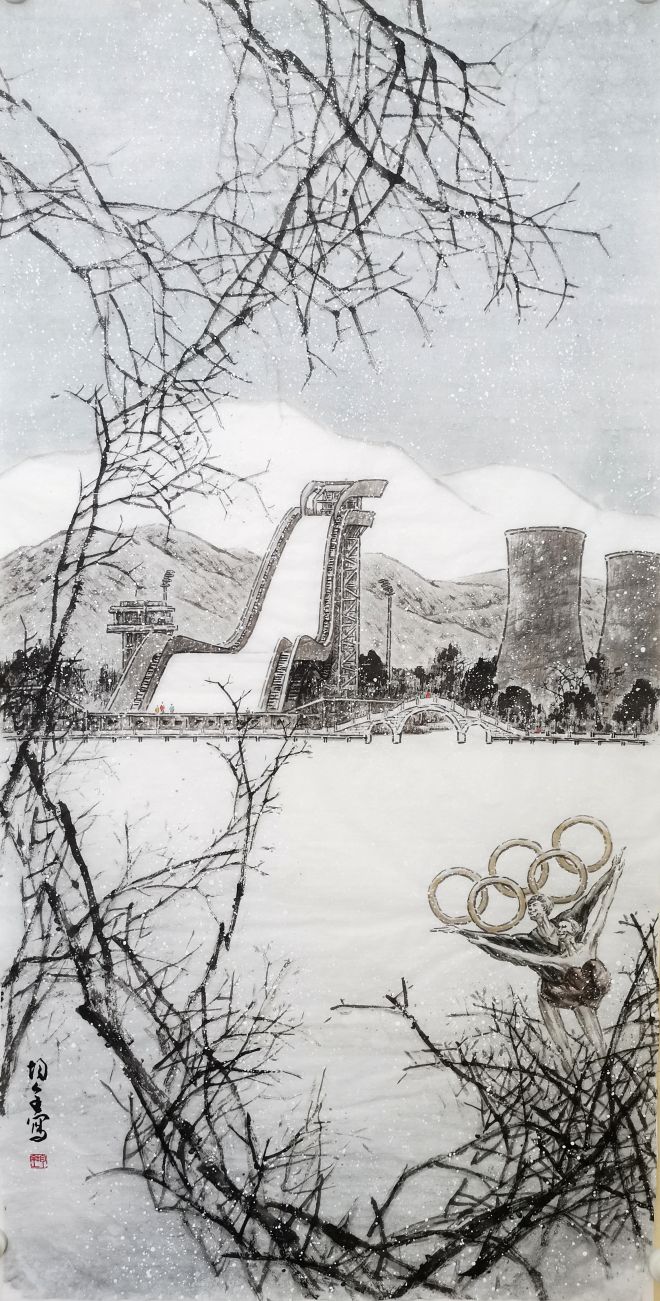 《瑞雪冬奧》國畫 劉鈞全(首鋼)
