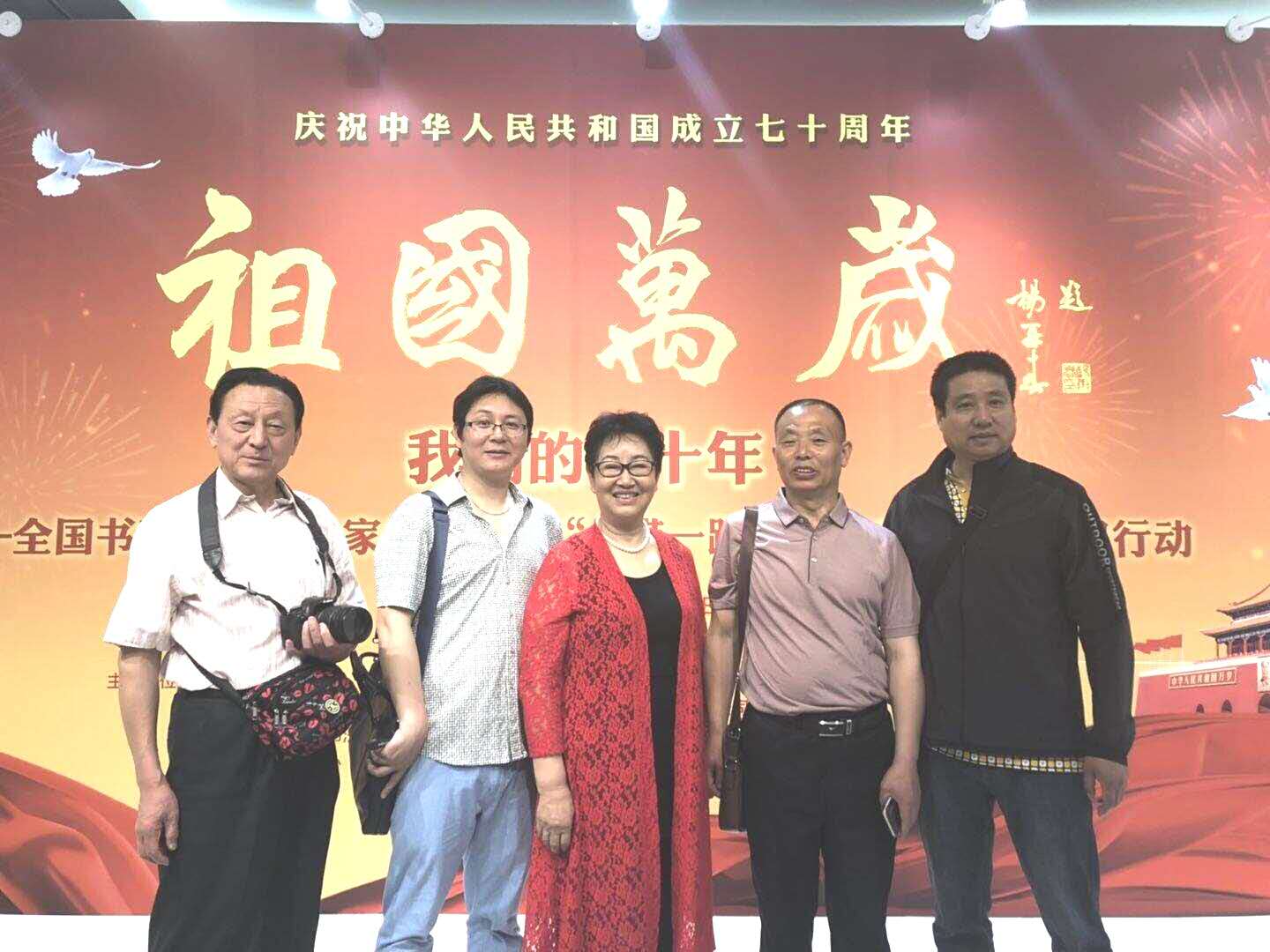 圖為 李占(右2)參加“祖國萬歲 我們的七十年——`一帶一路'青年中國書畫傳習行動”啟動儀式