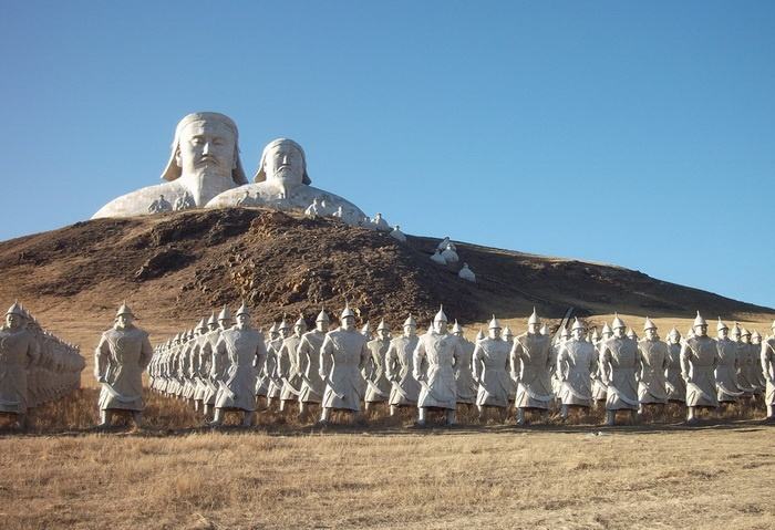 草原上的驕子成吉思汗更是一個鮮活至極的人物,汗牛充棟的文學作品塑造了“一代天驕”的de形xing象xiang。遠yuan處chu,觀guan音yin山shan橫heng臥wo在zai草cao原yuan腹fu地di,霍huo林lin郭guo勒le標biao誌zhi性xing景jing觀guan可ke汗han山shan位wei於yu觀guan音yin山shan腳jiao下xia,可ke汗han山shan以yi整zheng個ge山shan體ti為wei載zai體ti,在zai山shan頂ding矗chu立li起qi蒙meng古gu民min族zu最zui具ju代dai表biao性xing的de元yuan太tai祖zu成cheng吉ji思si汗han和he元yuan世shi祖zu忽hu必bi烈lie的de巨ju型xing雕diao塑su。成cheng吉ji思si汗han肖xiao像xiang高gao50米,忽必烈頭像高30米。一組和山體融為一體的圓雕展示著蒙元及北元時期16位帝王的形象。兩員大將哲別和速不台的雕像分列兩側,護衛山門。800米的“蒼狼之路”上佇立了26根石人柱,雕刻著成吉思汗之上25代祖先的重要人物形象,800名武士排列的“蒙元兵陣”莊嚴而威武。