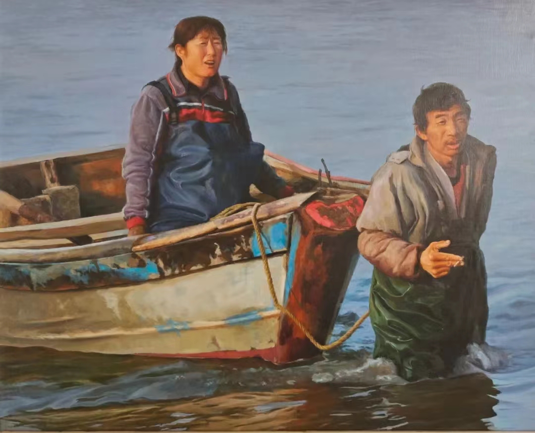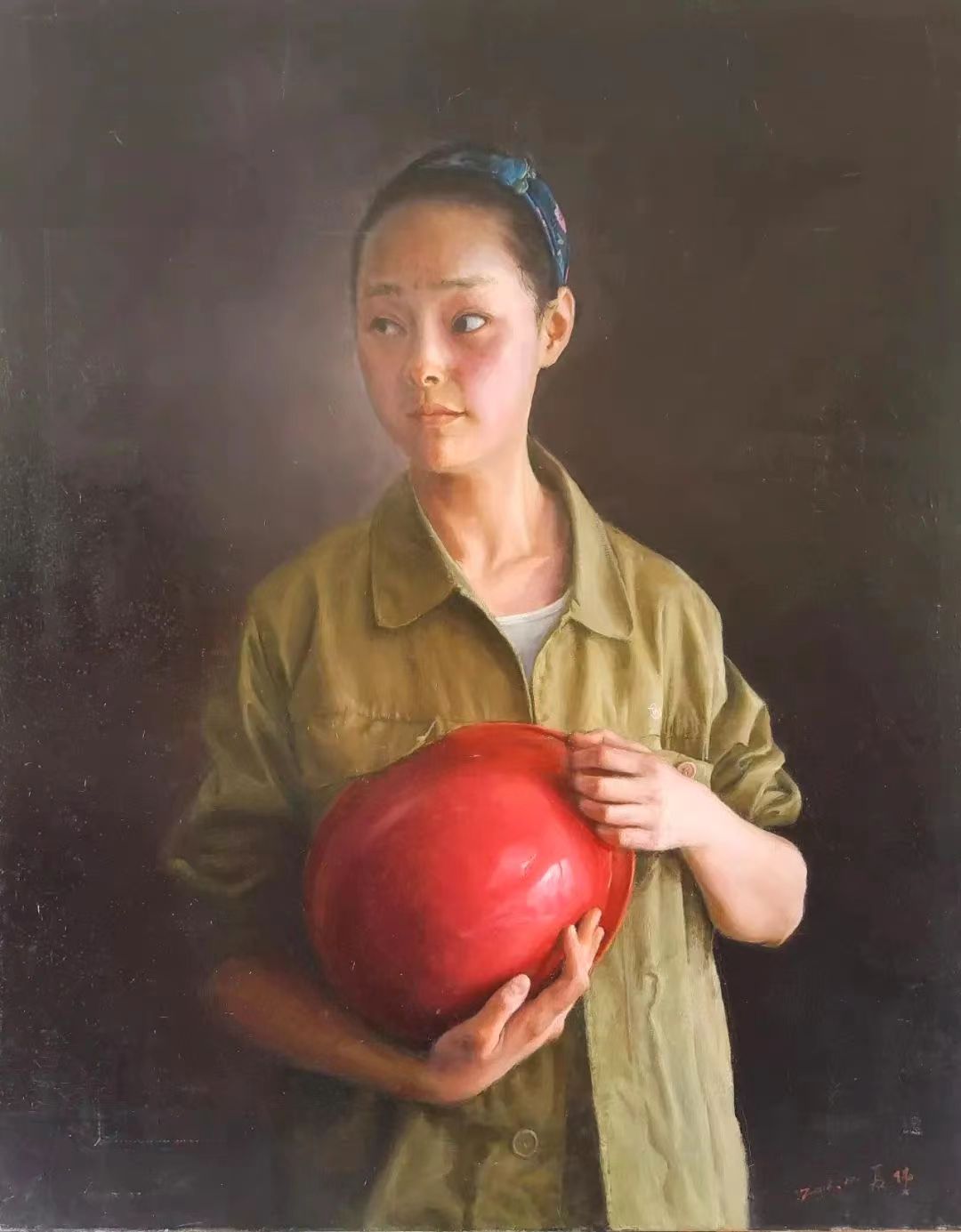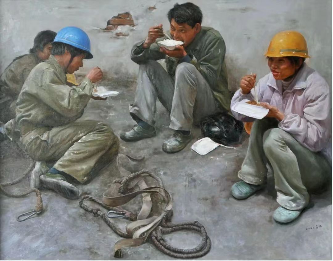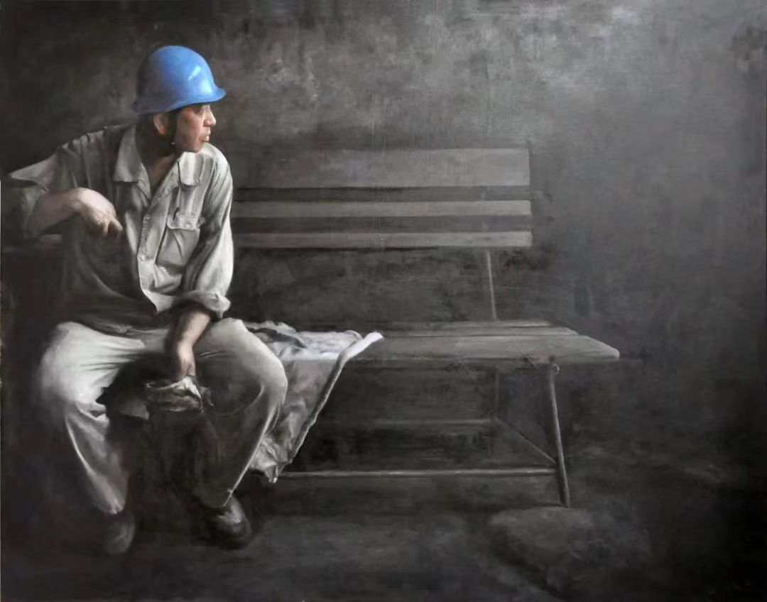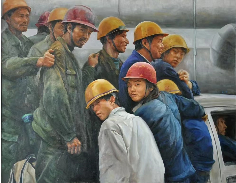 作品特點:用寫實的手法,對人物形象進行深入刻畫,畫麵加入了大量工業元素,再現了一線工人風采。