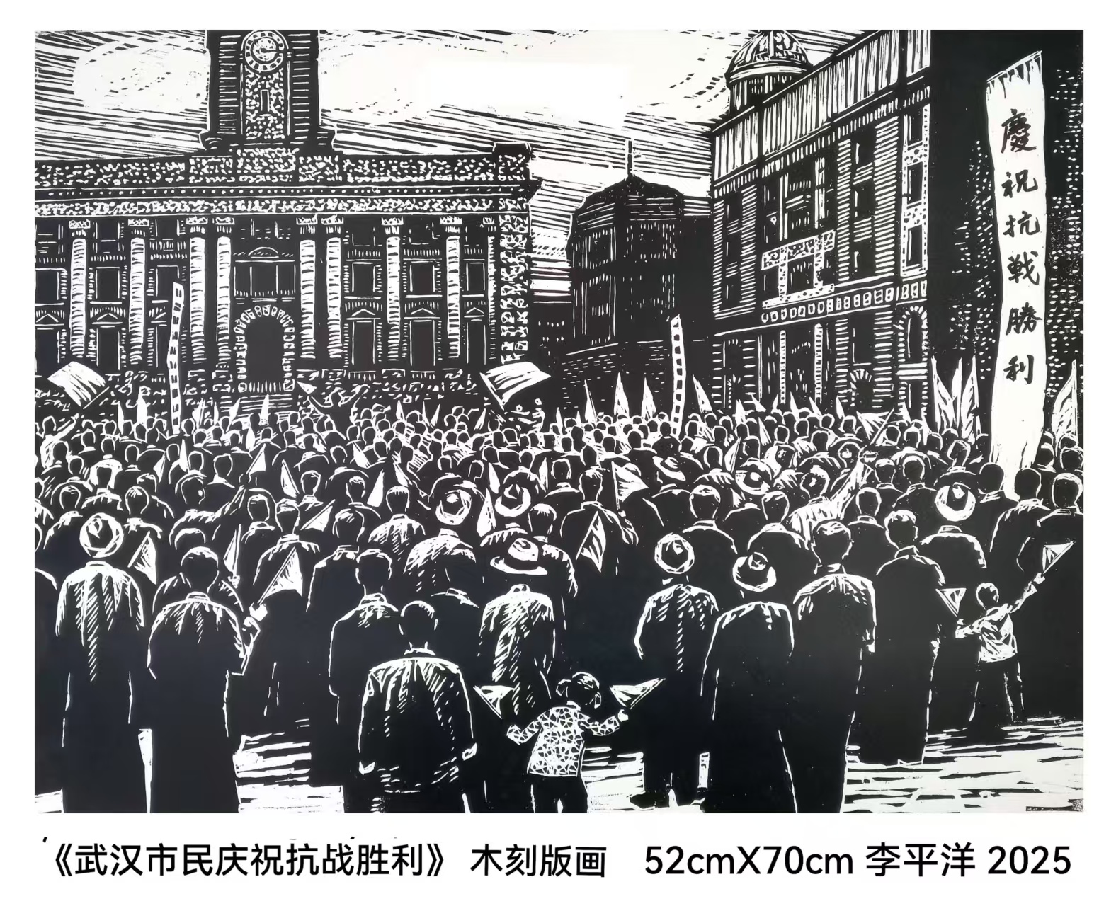 《 武漢市民慶祝抗戰勝利》版畫 李平洋 (中國一冶)