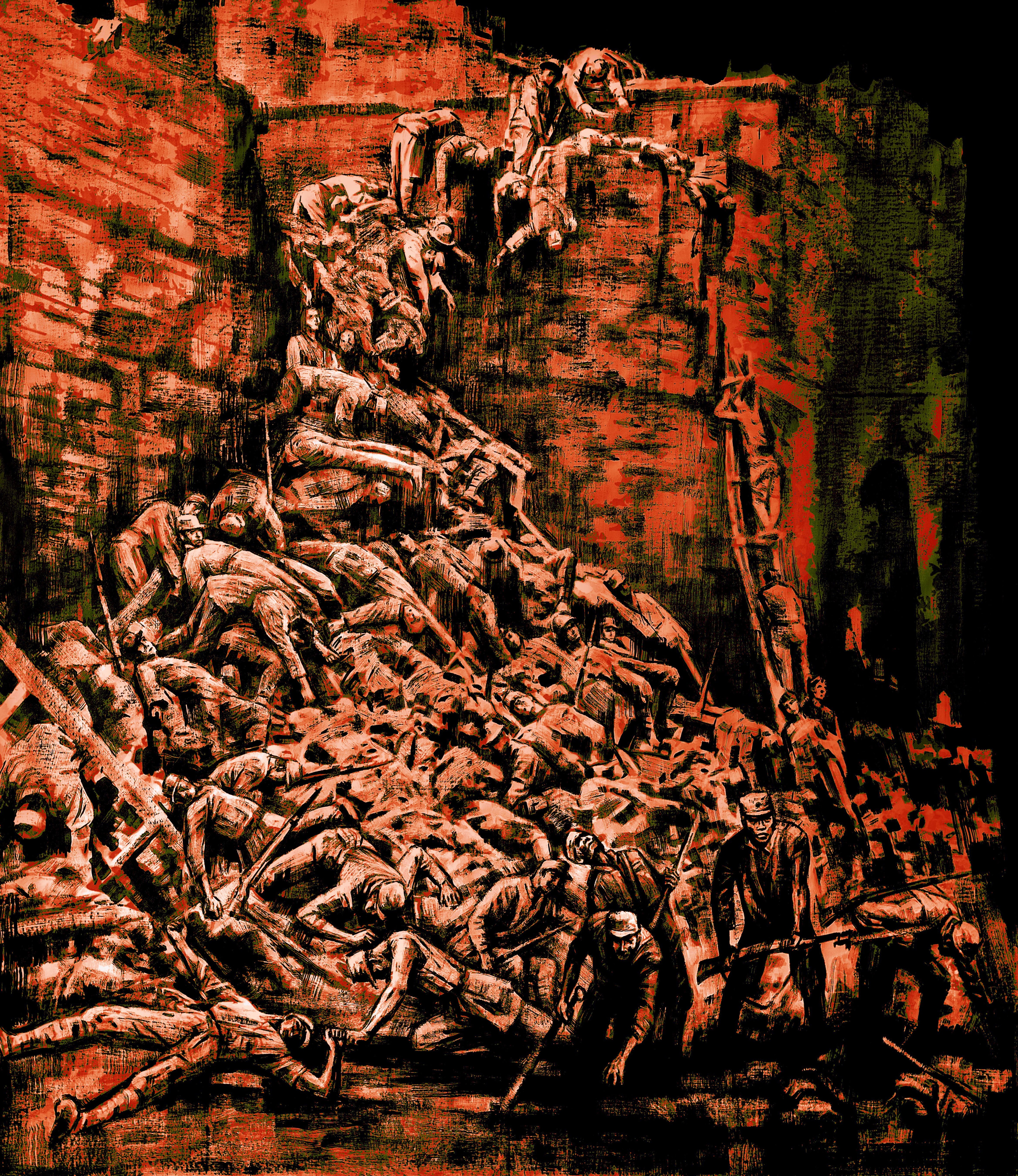 《血肉長城 1941長沙保衛戰 》絲網版畫 徐旭 李鐵軍(湘鋼)