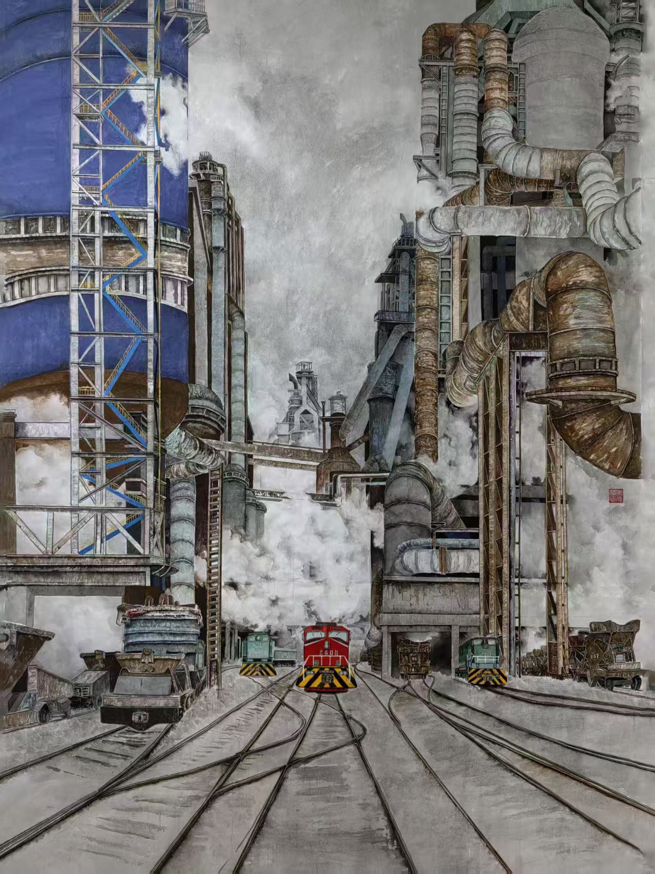 《鋼鐵雄姿80年》國畫 李傳清 (鞍鋼)