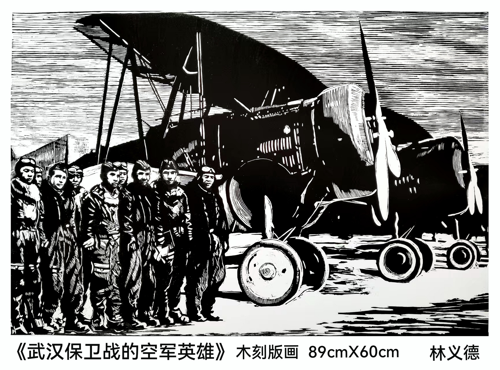 《武漢保衛戰的空軍英雄》 版畫 林義德 (寶武武鋼)