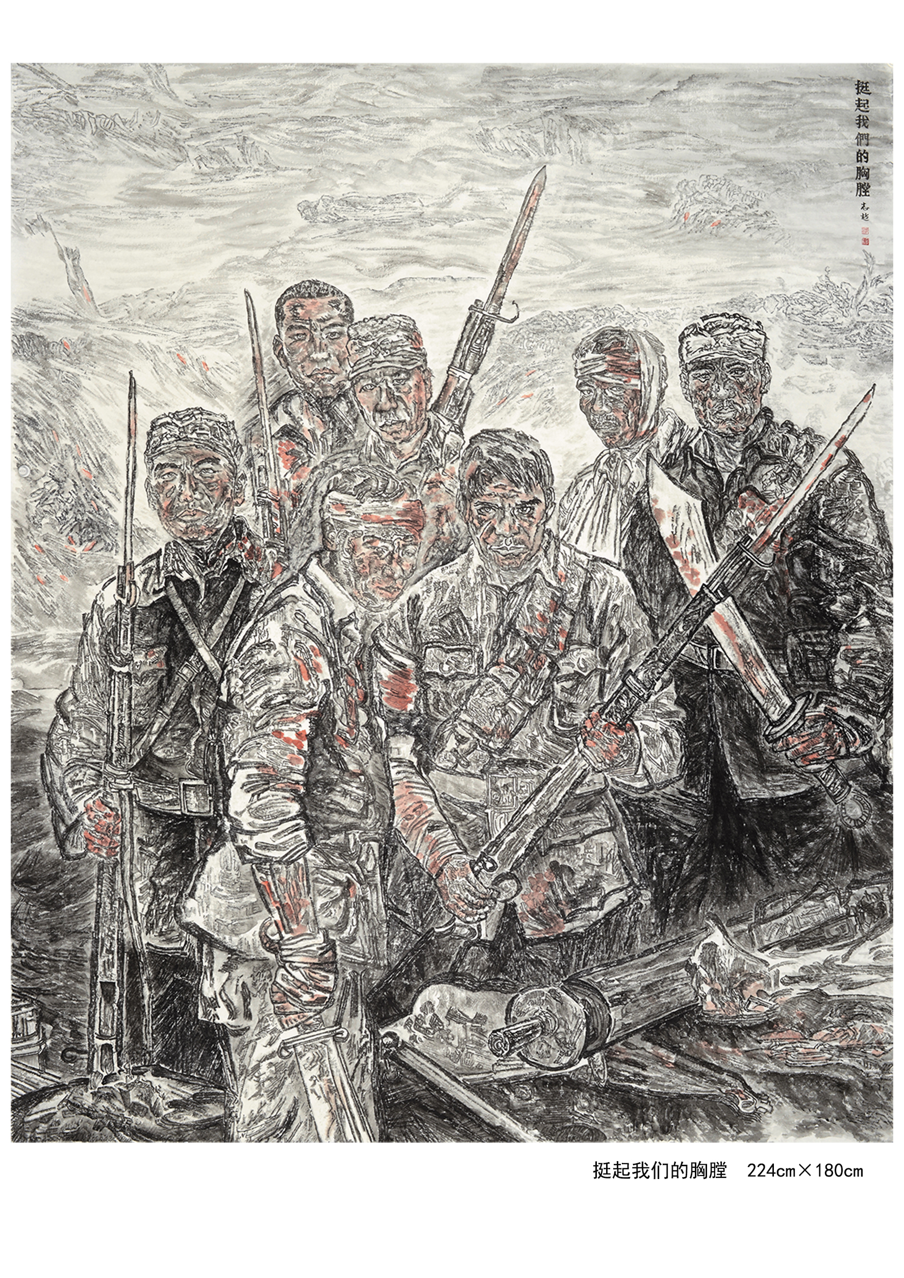 《挺起我們的胸膛》 國畫 鄭誌超 (寶武馬鋼)