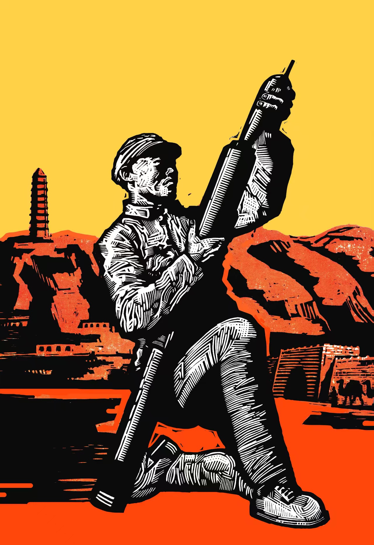 《敵人來了有獵槍》 版畫 陳明 (中國一冶)