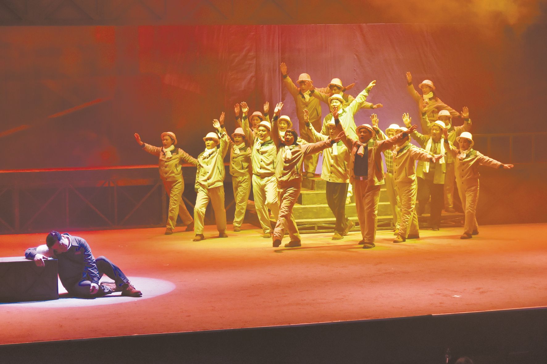 4月1日,大型萊蕪梆子劇《我喜歡大夥叫我書記》泰山鋼鐵集團專場在萊蕪文化館開演。該劇以泰山鋼鐵發展曆程為主要內容,生動再現了泰山鋼鐵由小到大、由弱到強的曆史巨變。該劇已被山東省文化廳確定為全省舞台藝術青年人才創作扶持項目。圖為演出現場。 (特約通訊員 鄭亮友 攝)