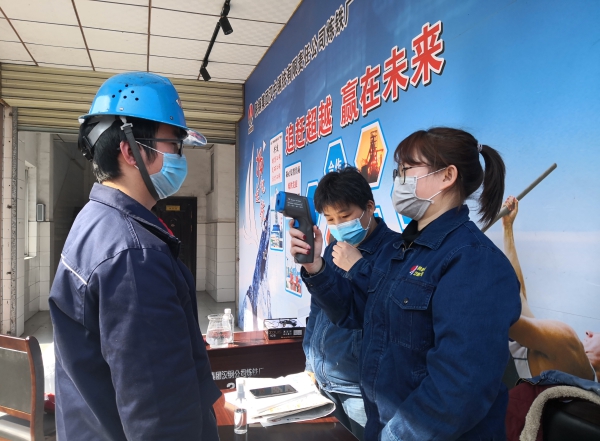 理發前各單位人員整齊的排隊,人與人之間保持一定的距離,對理發人員進行測溫登記,理發用的工具每次用酒精擦洗消毒。