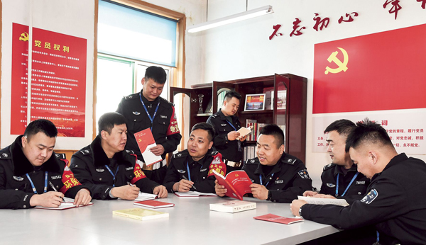 3月22日,中國寶武太鋼集團保衛部護衛支隊隊員在黨史學習教育中交流心得(如圖)。太鋼集團保衛部護衛支隊在黨史學習教育過程中,創新方法,注重實效,通過采取“三會一課”、主題黨日、舉辦讀書會等形式夯實學習基礎,營造學習氛圍,紮實推進黨史學習教育向縱深開展。 (特約通訊員 王旭宏 攝 通訊員 張偉 文)