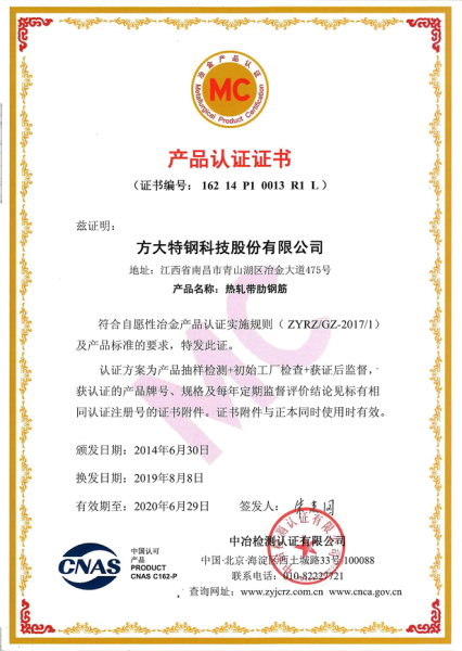 2017年以來,方大特鋼積極配合國家部委推廣高強鋼筋應用,及時淘汰HRB335和HPB235等普通鋼筋產品,將螺紋鋼產品強度等級提升至400MPa及以上等級。2019年,方大特鋼又協同江西省螺紋鋼產品主要生產企業,積極倡導和推動HRB400E高強抗震螺紋鋼在江西省的生產和應用,2019年下半年以來基本實現江西省400MPa級螺紋鋼全抗震化,極大地推動了省內螺紋鋼產品的質量等級提升。2020年,方大特鋼繼續開展更高強度螺紋鋼的研發,包括屈服強度600MPa以上的HRB600熱軋帶肋鋼筋及其他更高強度的鋼筋產品,高強鋼筋的應用可改善建築結構中“肥梁胖柱”問(wen)題(ti),提(ti)高(gao)建(jian)築(zhu)使(shi)用(yong)麵(mian)積(ji),增(zeng)加(jia)建(jian)築(zhu)結(jie)構(gou)設(she)計(ji)的(de)靈(ling)活(huo)性(xing),對(dui)提(ti)高(gao)我(wo)國(guo)鋼(gang)筋(jin)混(hun)凝(ning)土(tu)結(jie)構(gou)的(de)綜(zong)合(he)性(xing)能(neng),推(tui)動(dong)重(zhong)大(da)工(gong)程(cheng)的(de)技(ji)術(shu)進(jin)步(bu),提(ti)高(gao)建(jian)築(zhu)結(jie)構(gou)的(de)安(an)全(quan)性(xing),促(cu)進(jin)鋼(gang)鐵(tie)產(chan)業(ye)的(de)結(jie)構(gou)調(tiao)整(zheng)和(he)節(jie)能(neng)減(jian)排(pai)等(deng)方(fang)麵(mian),具(ju)有(you)重(zhong)要(yao)的(de)意(yi)義(yi)。