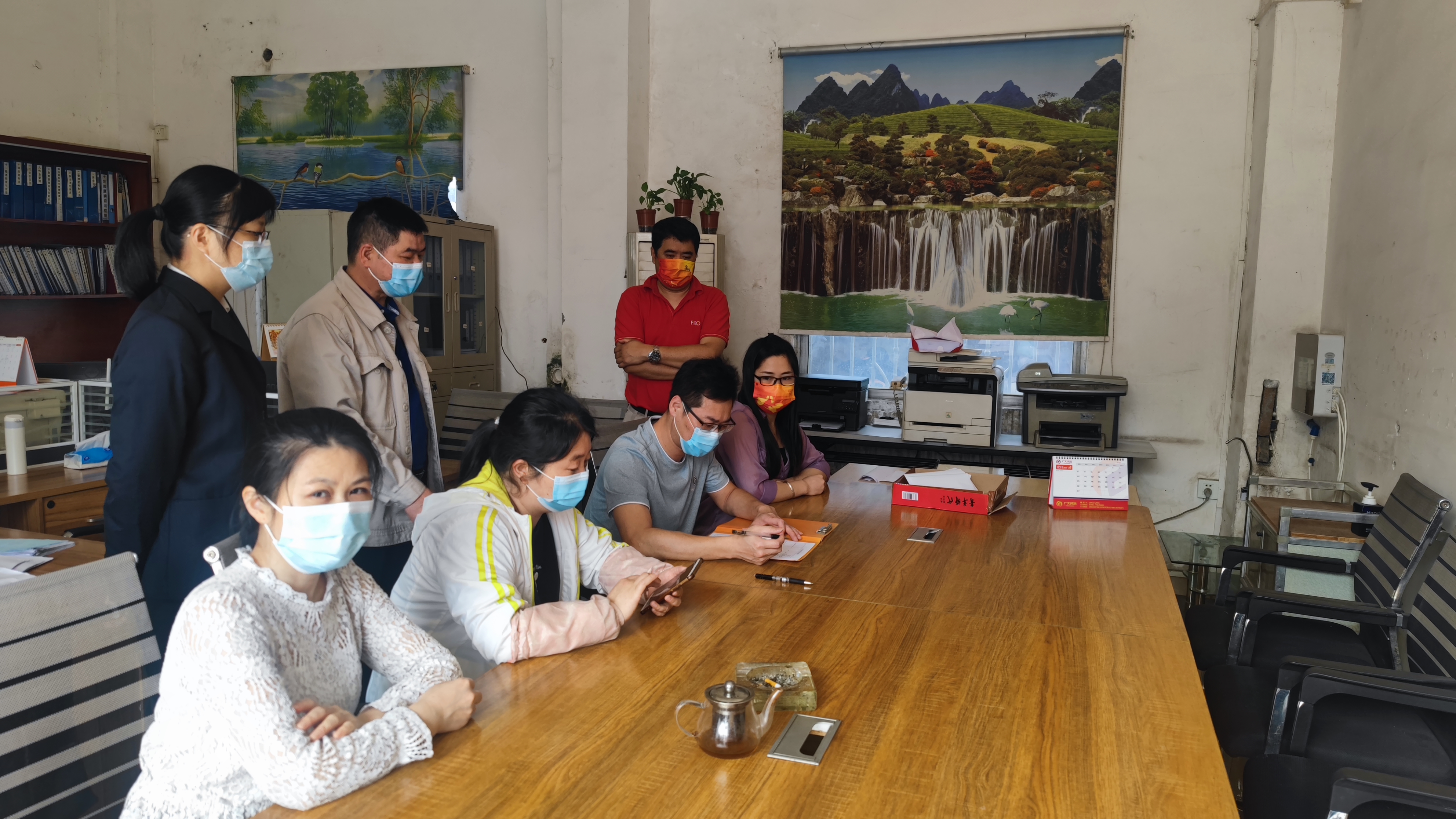 一分部署,九分落實!yiqingfangkongzujizhannengfouqudezuizhongshengli,guanjianhaiyaokanzhixingheluoshi。zaizhechangteshuzhanzhengzhong,meiyourenshipangguanzhe。yingxiaobangonglouyiloushigongsidehuiyishi,pingshicanjiahuiyiderenjinjinchuchu,weiqianghuayingxiaozhongxindaloufangyiguanli,fangfanyiqingfengxian,zhongxinmeitiananpaizhiyuanzhezaoshang7:40-8:30在一樓進行人工測溫,查驗健康碼,情況正常後領取笑臉貼方可進入辦公區域,8:30測溫人員將一樓大門關閉。如有訪客,遵循“誰接待誰負責”的原則,由接待部門安排專人負責開門,除根據要求確認來訪客人健康碼、行程碼和核酸檢測結果信息外,還要對來訪客人進行人工測溫和測溫信息登記。