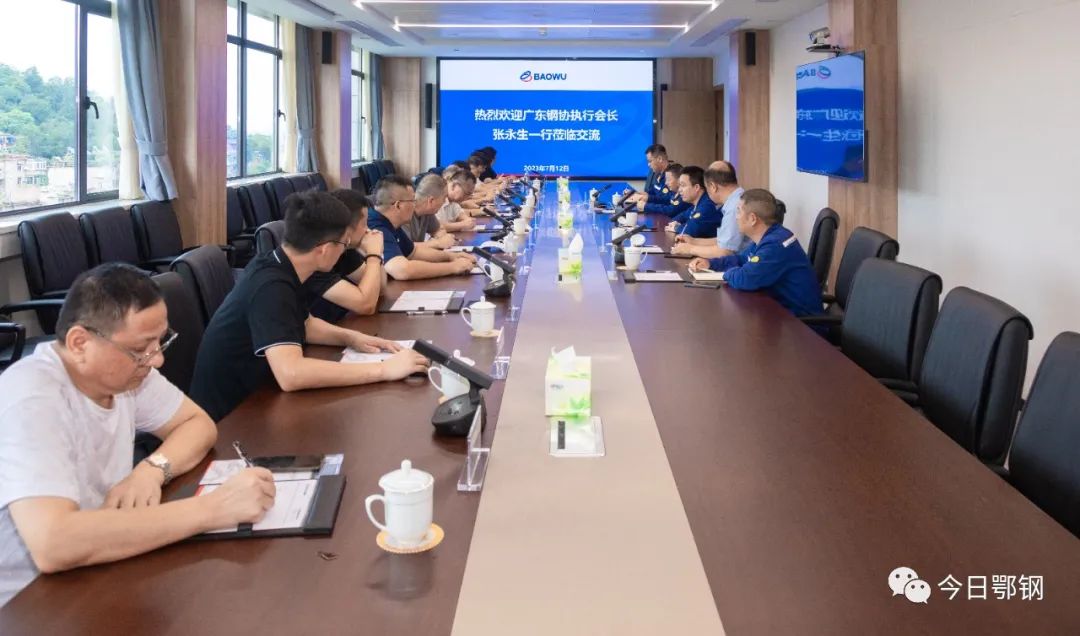 廣東省鋼協客人對鄂鋼推行“一人一表”、績效賽馬等改革創新舉措,以及堅持對標找差、潛心“冬練”,先後獲得高端綠色鋼材智能製造示範工廠、湖北省內首家超低排A級企業等榮譽表示高度讚賞。希望與鄂鋼加強交流,共同應對鋼鐵嚴冬。