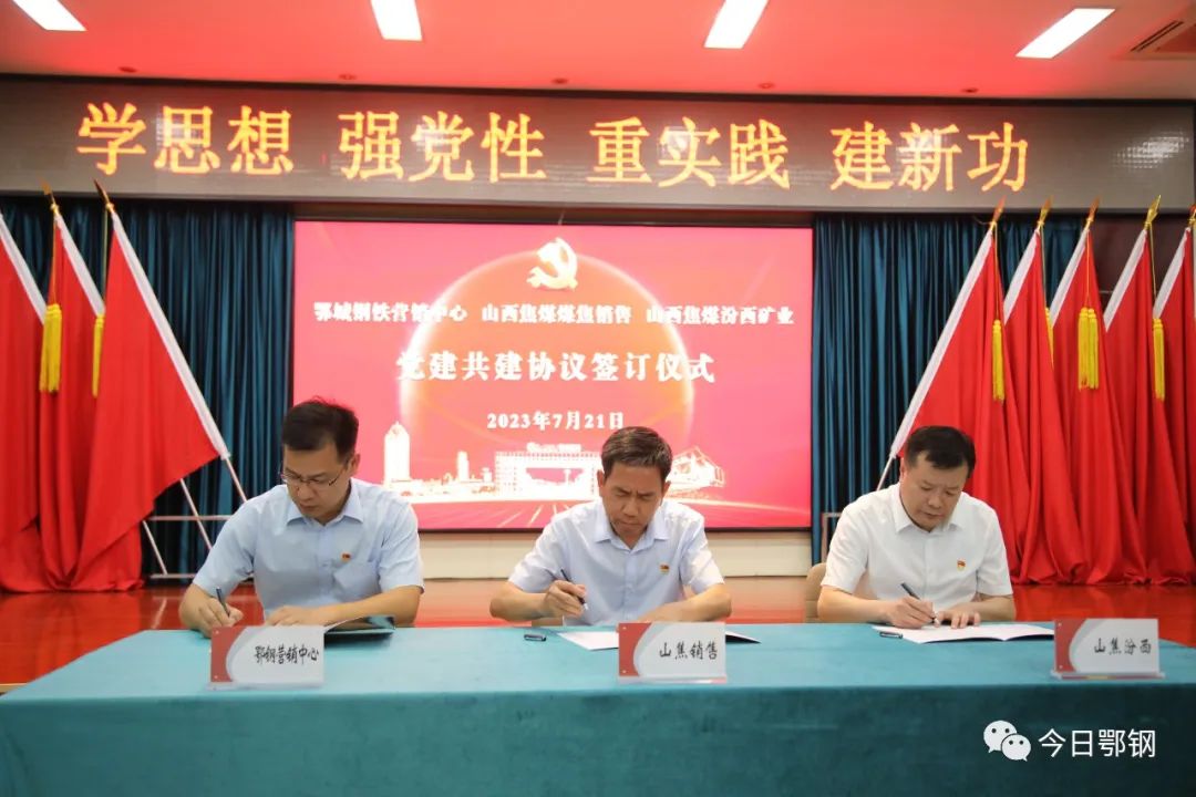 7月21日,鄂城鋼鐵營銷中心黨委、山西焦煤煤焦銷售公司黨委、山西焦煤汾西礦業黨委在晉簽署三方《黨建共建協議》。鄂城鋼鐵黨委副書記(主持工作)、副董事長王虎祥,山西焦煤煤焦銷售黨委書記、董事長薛軍,山西焦煤汾西礦業黨委書記、董事長要華偉等領導參加簽約儀式。