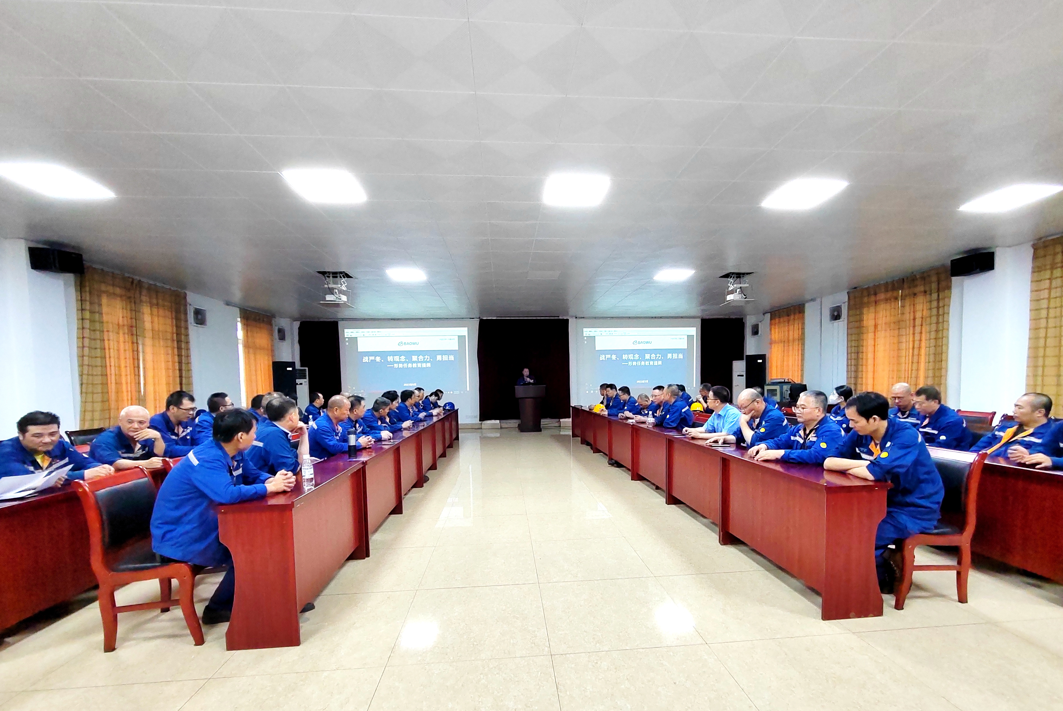 線上學,線下講。線上,注重寶武微聊的運用,積極打造“指尖宣傳陣地”,定期推送形勢任務教育知識要點,方便職工隨時隨地學。線下,成立以領導班子成員、科室主任、作業長、黨支部書記為成員的宣講團,利用安全學習、班前會、橫班會等形式,深入班組,分層分級與員工“麵對麵”開展形勢任務教育宣講,引導員工全麵審視和準確分析當前的形勢,強化執行力,促關鍵指標優化,助力鐵水、燒結礦、焦炭產量提升,切實將形勢任務教育落實。