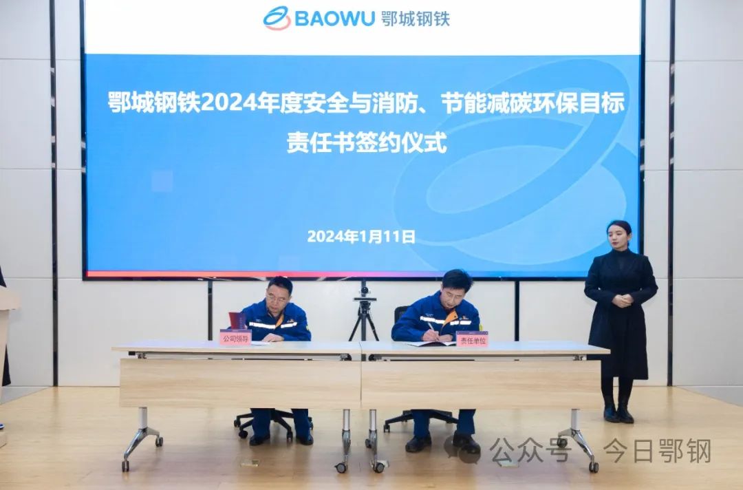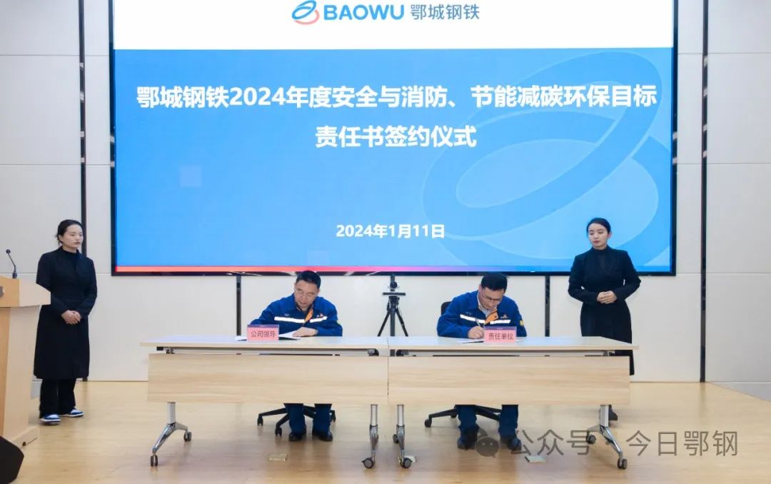 陸隆文代表公司黨委和行政分別與煉鐵廠、鋼軋廠、寬厚板廠、安全保衛部、能源環保部現場簽訂了2024年安全生產與消防工作、節能環保責任書。公司黨委副書記、紀委書記曾撼宇宣讀了《2023年度安全生產、能源環保先進集體和先進個人表彰決定》。