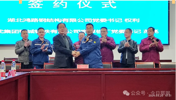 近日,鄂鋼寬厚板廠黨委與湖北鴻路鋼結構有限公司黨委舉行了“黨建引航 共鑄輝煌”黨組織共建活動。
