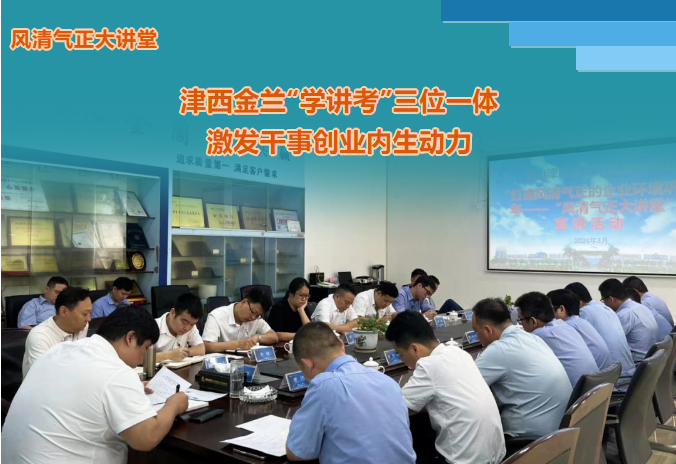 為推進“打造風清氣正企業環境”主題活動落地見效,全麵實現從嚴治企、嚴肅紀律、淨化風氣,激發內生動力,凝聚發展合力,推動企業健康持續高質量發展,連日來,津西金蘭精心謀劃,認真組織,采取“學講考”三位一體模式,提升“風清氣正大講堂”活動效果,進一步營造風清氣正、幹事創業氛圍。