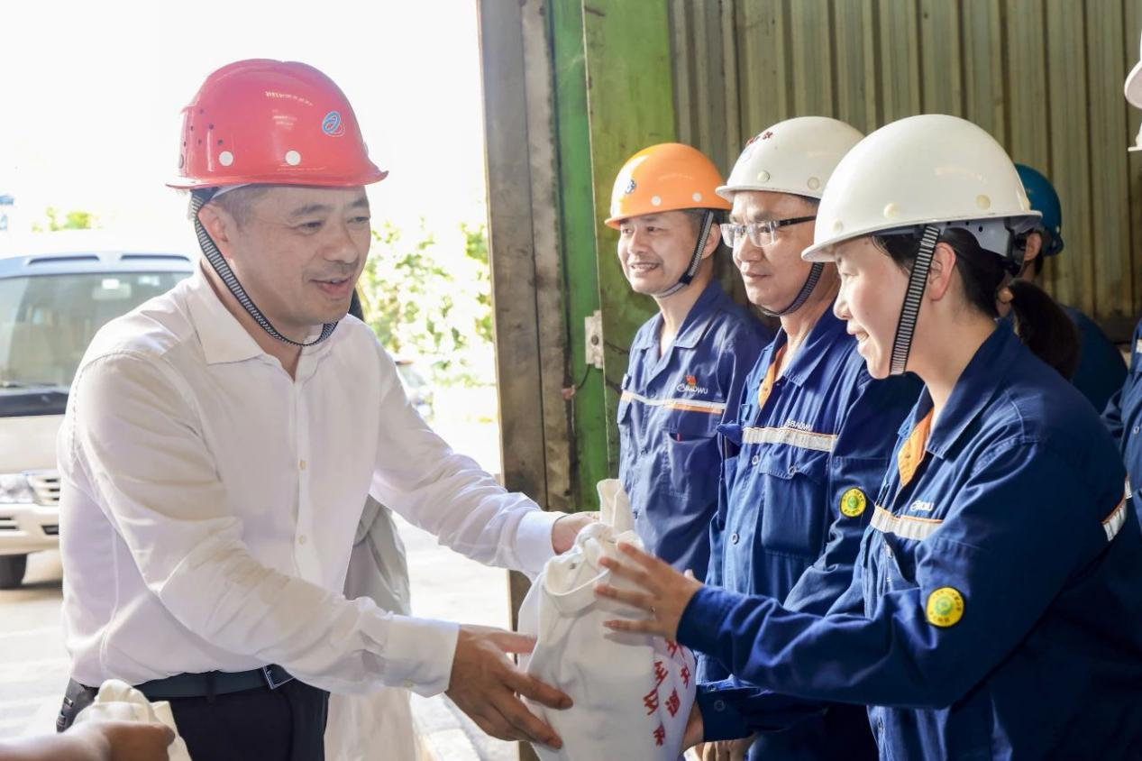 劉小強來到熱卷產線4號門,對在炎炎烈日裏依然奮戰在生產一線的員工表示感謝!為wei他ta們men送song上shang防fang暑shu降jiang溫wen慰wei問wen品pin,叮ding囑zhu大da家jia近jin期qi天tian氣qi炎yan熱re,一yi定ding要yao合he理li安an排pai作zuo息xi時shi間jian,工gong作zuo中zhong要yao注zhu意yi防fang暑shu,隻zhi有you確que保bao自zi身shen安an全quan,才cai能neng以yi更geng加jia飽bao滿man的de熱re情qing和he充chong沛pei的de精jing力li做zuo好hao各ge項xiang工gong作zuo。他ta強qiang調tiao,重zhong慶qing鋼gang鐵tie各ge級ji管guan理li者zhe要yao時shi刻ke關guan注zhu一yi線xian工gong作zuo人ren員yuan的de身shen體ti健jian康kang和he現xian場chang防fang暑shu降jiang溫wen工gong作zuo,全quan力li保bao障zhang好hao員yuan工gong安an全quan、生產安全,堅決防範和遏製安全生產事故發生。