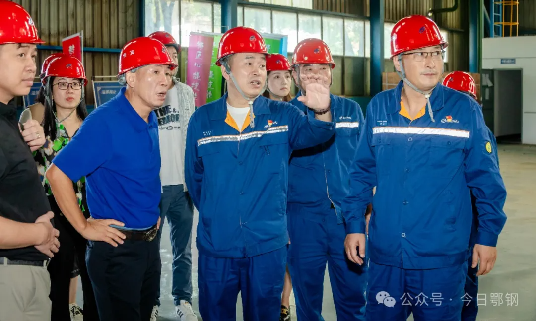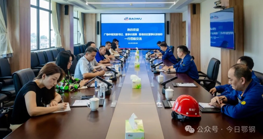 8月30日,廣東廣物中南建材集團有限公司黨委書記、董事長胡灝,香港創誌集團董事長張錦彬一行來訪鄂鋼。該公司高級副總裁(主持工作)黃大軍陪同客人現場參觀調研,雙方就商務合作事宜進行深入交流,並達成共識。(文:魏鋼、鄭青 圖:桂多)