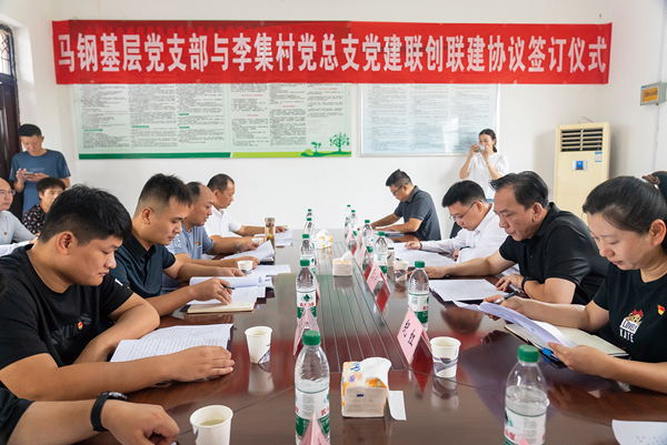 圖為馬鋼基層黨支部與李集村黨支部聯創聯建協議簽訂儀式現場。