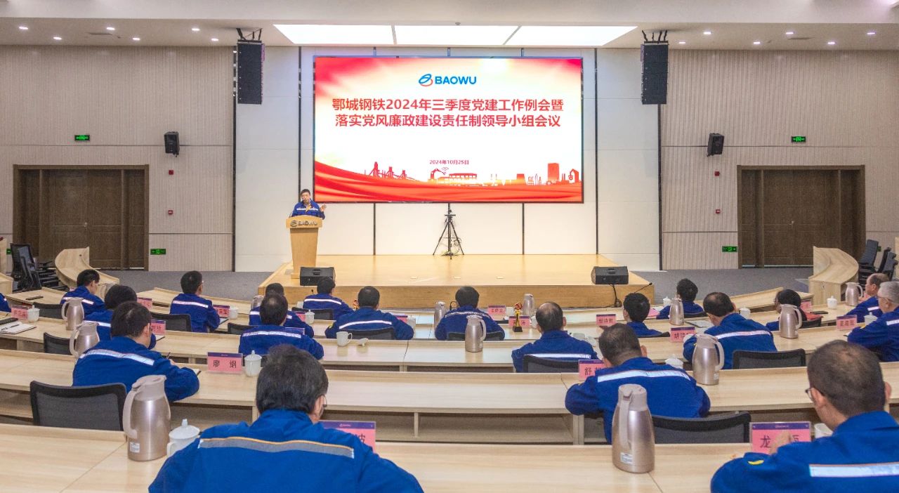 10月25日,鄂城鋼鐵公司黨委召開三季度黨建工作例會暨落實黨風廉政建設責任製領導小組會議,傳達學習了《中共中央國務院關於深化產業工人隊伍建設改革的意見》,號召各級黨組織要進一步發揮黨組織政治功能和組織功能,為決戰決勝四季度工作、做好全年工作收官、打贏經營攻堅戰提供堅強組織保障,以實際成效迎接寶武第二次黨代會召開。