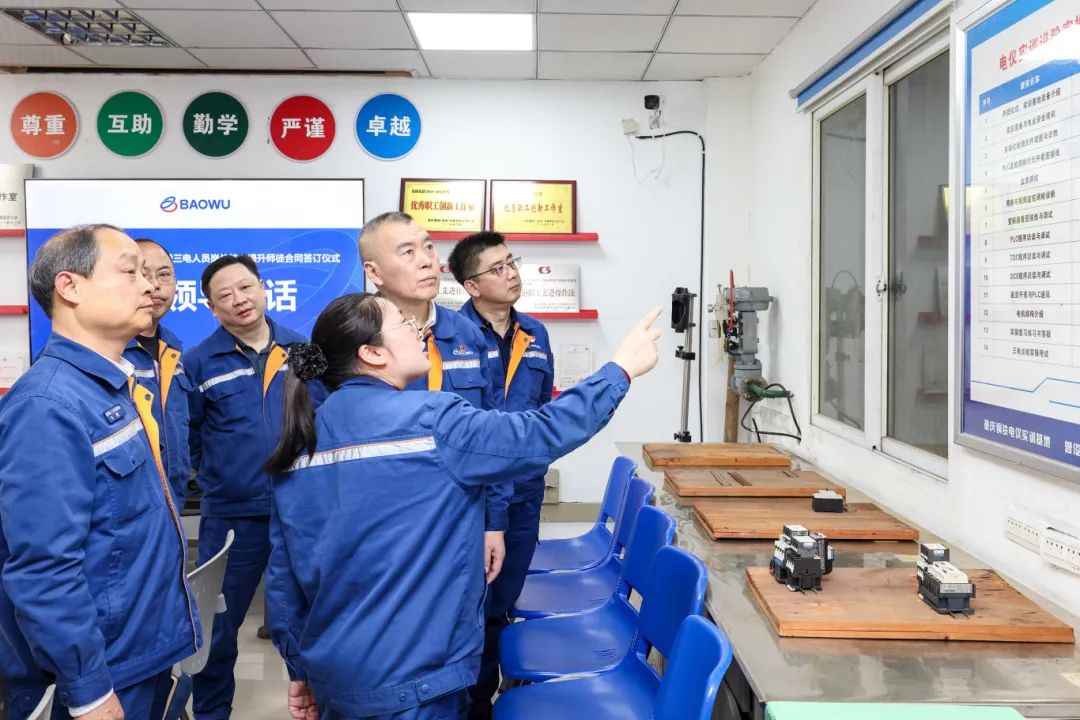 儀式上,軋鋼廠彙報了電儀實訓基地建設及運行情況。同時圍繞三電人員崗位能力提升舉行了“師徒簽約”儀式,借助實訓基地通過“師帶徒”的方式推動基層青年員工成長成才。