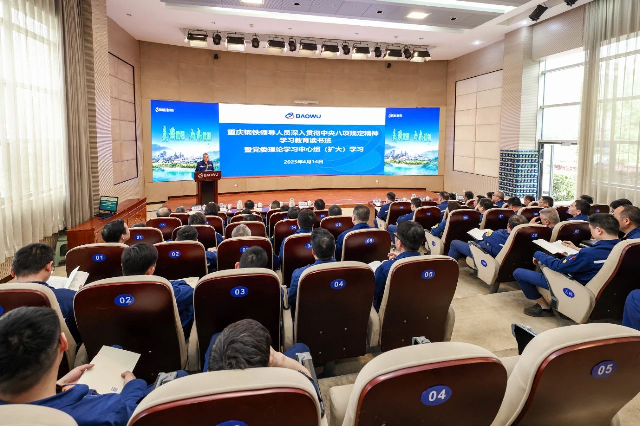 4月14日,重慶鋼鐵黨委舉行深入貫徹中央八項規定精神學習教育讀書班暨黨委理論學習中心組(擴大)學習,深入學習貫徹習近平總書記關於加強黨的作風建設的重要論述和中央八項規定精神。該公司黨委書記、董事長王虎祥主持會議並領學了《中共中央政治局貫徹落實中央八項規定實施細則》,參會相關公司領導領學了《習近平關於加強黨的作風建設論述摘編》部分章節。該公司領導,各單位廠部副職及以上管理人員參加學習。