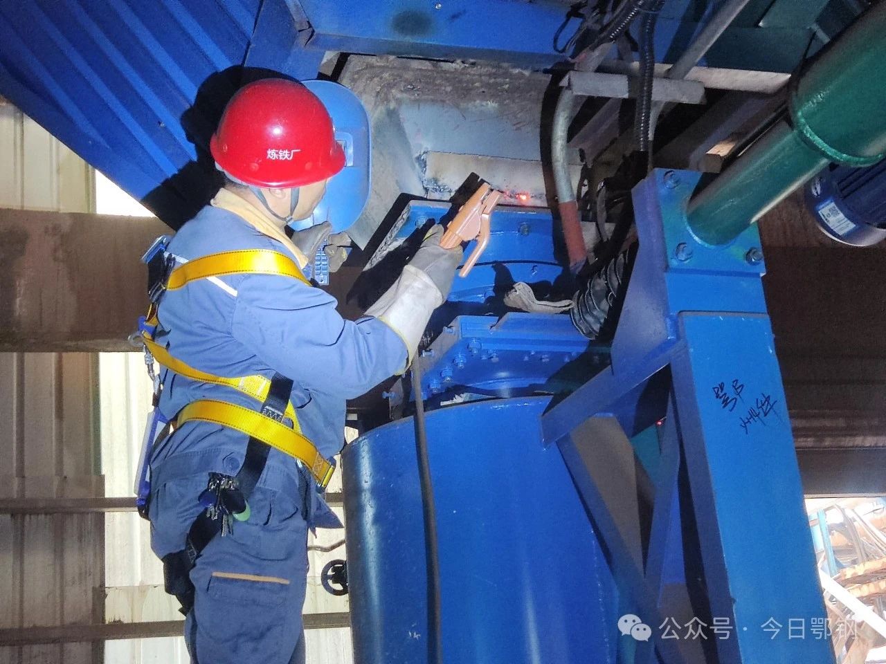 在燒結的檢修戰鬥中,他們主動請纓加入檢修隊伍。數小時的奮戰中,熟練地對卸料閥進行焊補,解決漏風“頑疾”,以最快速度完成滾筒更換,大大縮短了檢修時間。