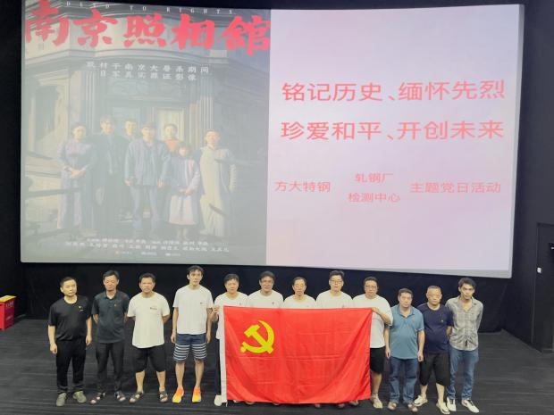 紅色光影映初心,砥礪奮進啟新程。為紀念中國人民抗日戰爭暨世界反法西斯戰爭勝利80周年,8月22日,方大特鋼軋鋼廠與檢測中心聯合組織43名黨員開展主題黨日活動,通過集中觀看紅色主題電影《南京照相館》,在光影流轉中重溫紅色記憶,從曆史深處汲取奮進力量。(李亞洲 萬軍)
