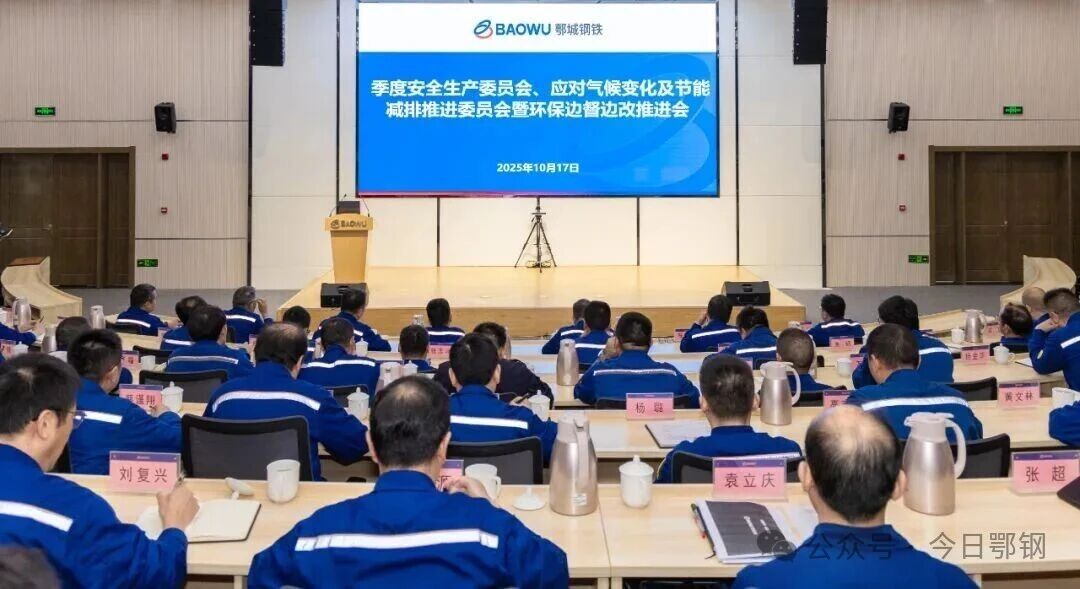 10月17日,鄂城鋼鐵公司召開季度安全生產委員會、應對氣候變化及節能減排推進委員會暨環保邊督邊改推進會、季度經營績效會暨黨建工作例會,以迎接黨的二十屆四中全會勝利召開為契機,對深入學習貫徹習近平生態文明思想、紮實做好環保邊督邊改工作再學習、再部署,動員該公司全體幹部員工堅持“三個一”理念,發揚“死盯、盯死”作風,打好2025年生產經營收官戰,謀劃好2026年重點工作任務。