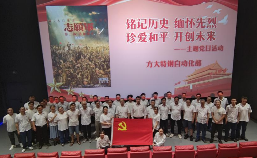 為深化愛國主義教育,傳承紅色基因,10月16日晚,方大特鋼自動化部黨委開展“銘記曆史、緬懷先烈、珍愛和平、開創未來”主題黨日活動,組織黨員及入黨積極分子觀看愛國主義題材電影《誌願軍:浴血和平》。