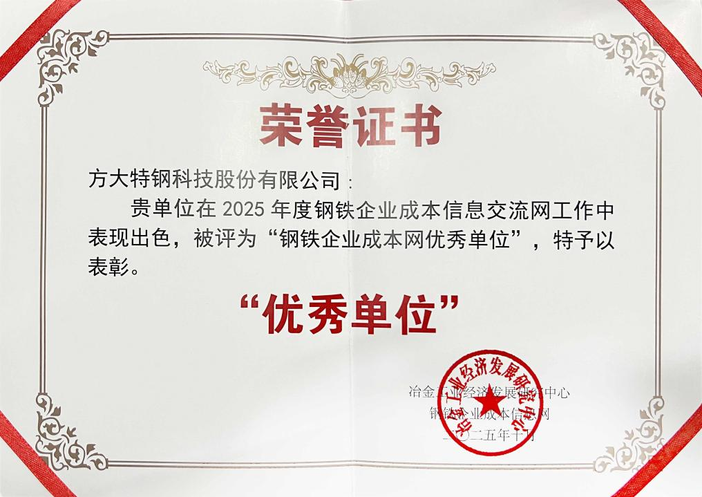 方大特鋼獲評成本信息網年度先進單位