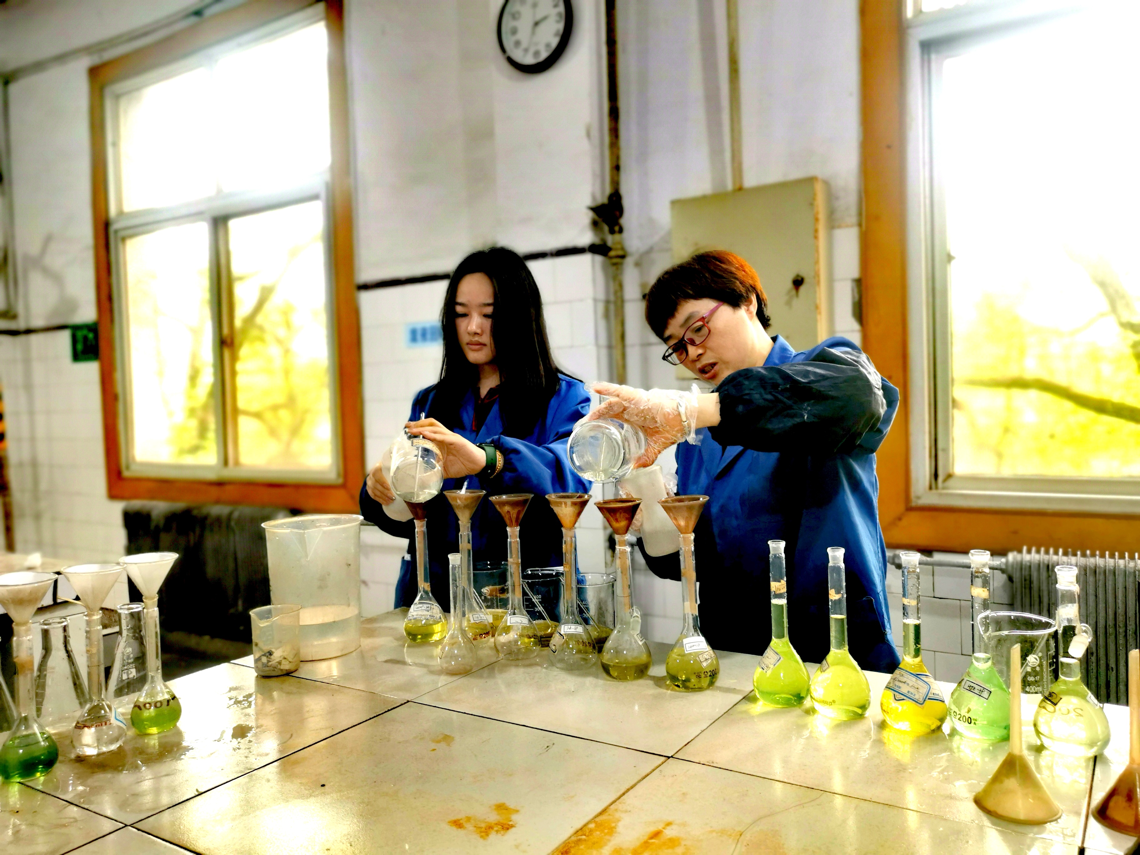 新餘鋼鐵集團有限公司檢測中心化學室針對工作量加大,人手不飽滿的情況,積極組織職工圍繞“三極新鋼、數智新鋼”開展短平快勞動競賽,調動全體職工的工作幹勁,確保來樣檢得出,周期有保證,指標上台階。圖為化驗工對鐵料進行過濾定容時情景。(張俊)