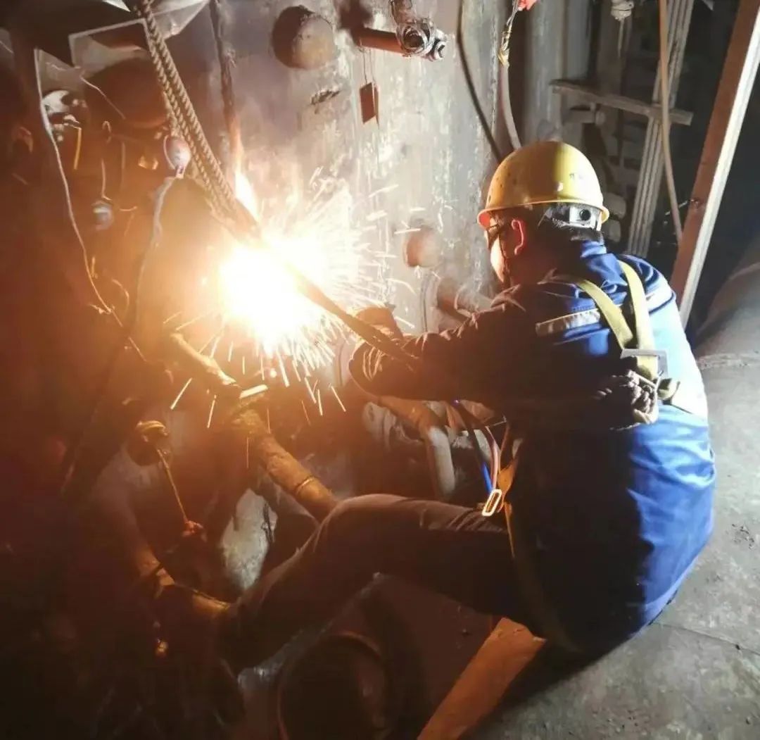 穿著長衣長褲,戴著厚厚的手套,汗滴濕透了後背,又從他們的褲腳流了下來。一槍、兩槍、三槍,角落裏焊花的撲哧聲,成為檢修最美妙的音符。