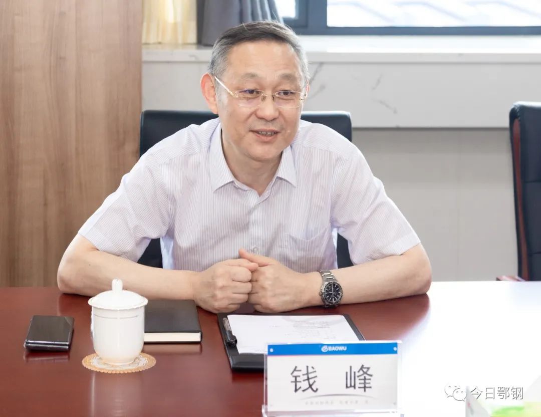 王虎祥對錢峰一行的到來表示歡迎,並介紹了鄂鋼發展曆程、智慧製造、綠色低碳等情況。他說,麵對鋼鐵“寒冬”,鄂鋼聚焦“三個極致”,大力實施“56210工程”,為完成2023年工作任務目標努力奮鬥。寶武清能鄂州公司作為“五元”單位,共同凝聚“同一個寶武”共識,在市場上堅持共進退、同發展,相互支持、共贏發展。